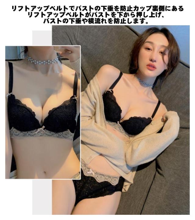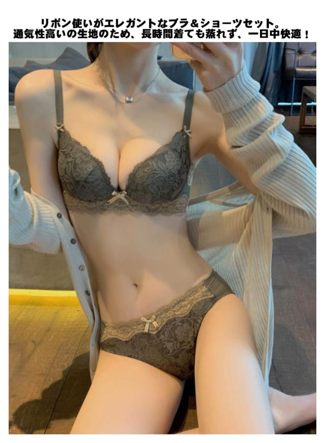 | リボン使いがエレガントなブラ&ショーツセット。 繊細なレースを贅沢に使った総レース仕様で、大人の魅力を引き出すデザイン。 リフトアップベルトでバストの下垂を防止 カップ裏側にあるリフトアップベルトがバストを下から押し上げ、バストの下垂や横流れを防止します。 キレイな丸みのあるバストに見せてくれます。 通気性高いの生地のため、長時間着ても蒸れず、一日中快適! | |