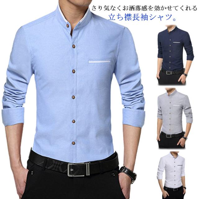 M−5XLサイズ!シャツ メンズ ワイシャツ 送料無料 立ち襟 Yシャツ メンズ ビジネスシャツ フォーマルシャツ スタンドカラー 長袖 春 夏 秋 冬 大きサイズ メンズファッション キレイめ 結婚式 綿混 白シャツ 送料無料