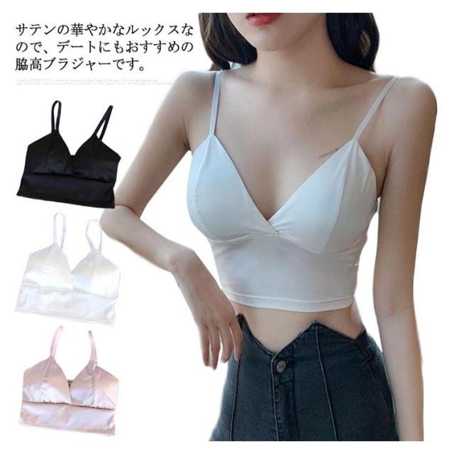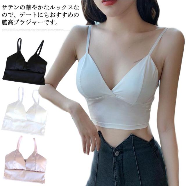 【送料無料】サテン シルクタッチ ベアトップ ビスチェ ベアビスチェ トップス ノースリーブ タンクトップ 下着 レディース ブラ ブラジャー ブラトップ キャミソール ノンワイヤーブラ 締め付けない 楽 ノンワイヤー 無地 かわいい 女性 脇肉
