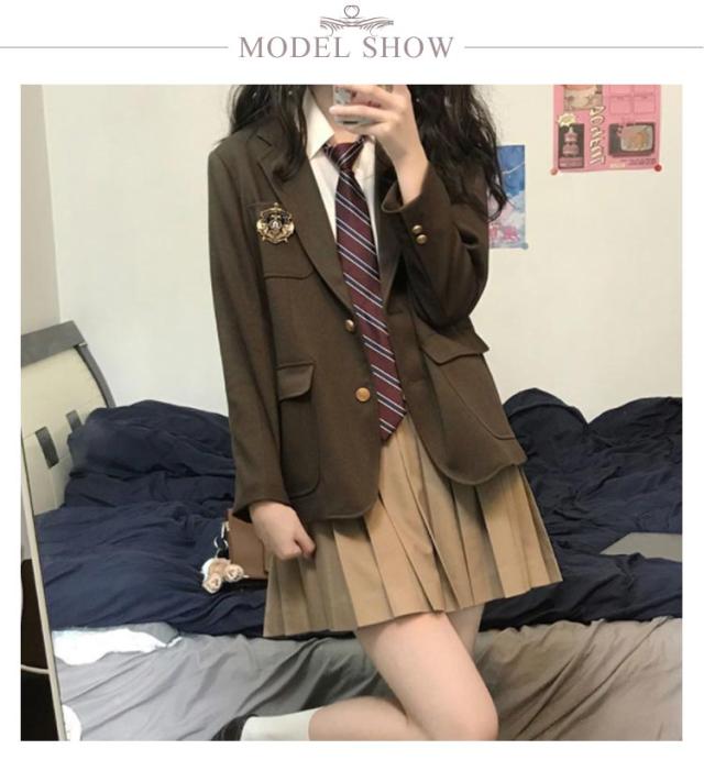 | ブレザー・スカート・シャツ・ネクタイの4点セット。 定番のブラックブレザーと落ち着きのあるダークブラウンのブレザーから選べます。 シンプルで使いやすい定番の長袖ワイシャツです。 オールシーズン使える、しっかりとした生地の無地プリーツスカートです。 派手すぎないさりげない可愛さの制服セットは、毎日の通学に活躍間違いなし! | |