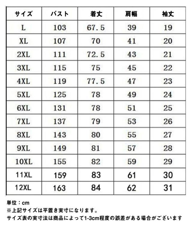 | サイズ | L XL 2XL 3XL 4XL 5XL 6XL 7XL 8XL 9XL 10XL 11XL 12XL |