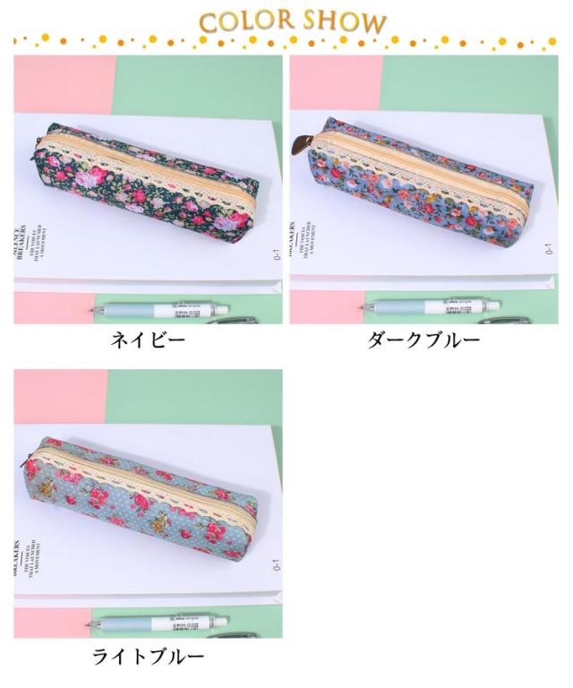 | 小花柄とレース使いが乙女心をくすぐる可愛いペンケース。 マチは5cmあるので、スリムに見えて修正ペン、ボールペン、鉛筆と定規、消しゴムなど必要筆記具がしっかり収納できます。 選べる2個セットなので、お友達へのプチギフトにも大変人気の商品となります。 | |