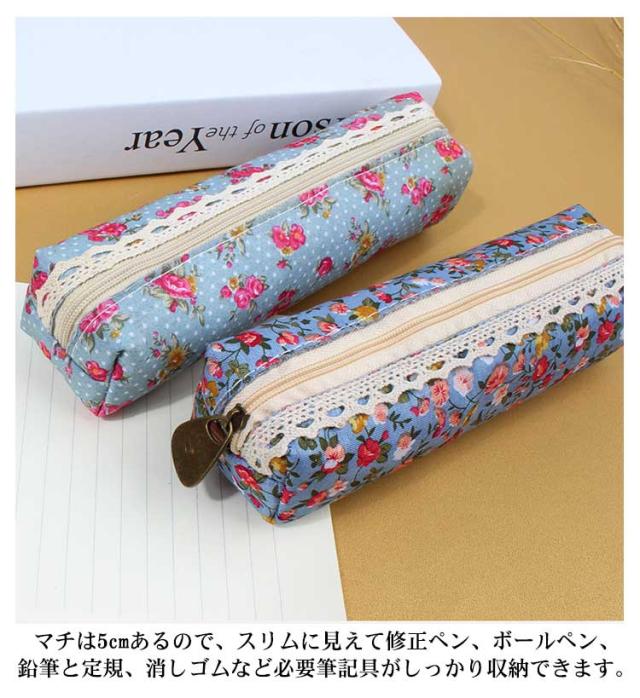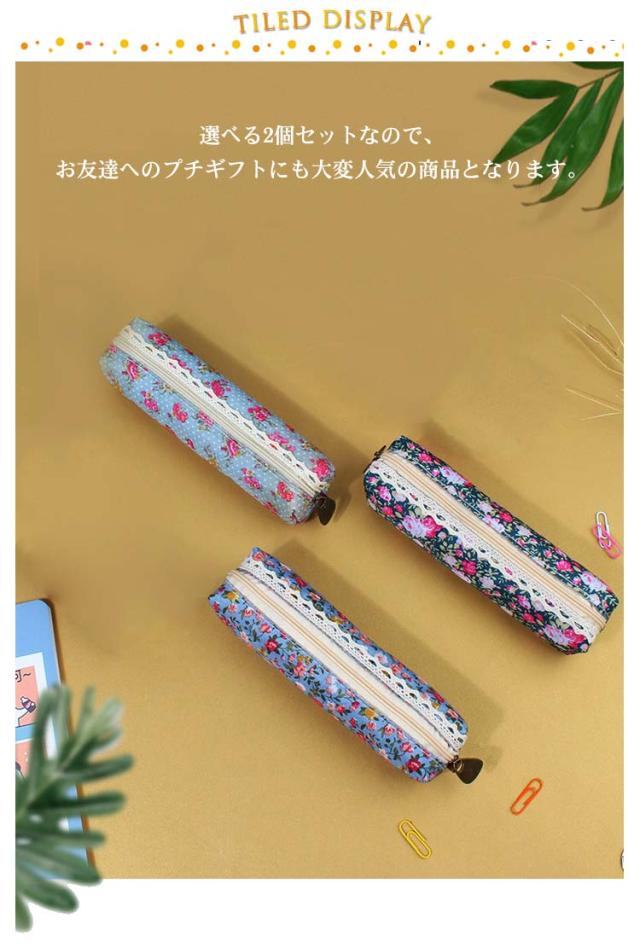 選べる2個セット ペンケース 布製 かわいい おしゃれ 花柄 スリム ペンポーチ 筆箱 小さい コンパクト 送料無料 レース 筆入れ 女子 新学期 お祝い プチギフト プレゼント 文房具 社会人 大学生 高校生 中学生 レディース