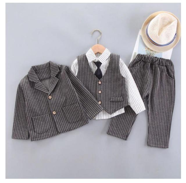 ベビー スーツ 男の子 4点セット フォーマル 子供 スーツ キッズ 赤ちゃん ネクタイ付き 入園式 こども 七五三 結婚式 おしゃれ ジャケット ズボン シャツ ベスト 保育園 73 80 90 100 110cm 送料無料