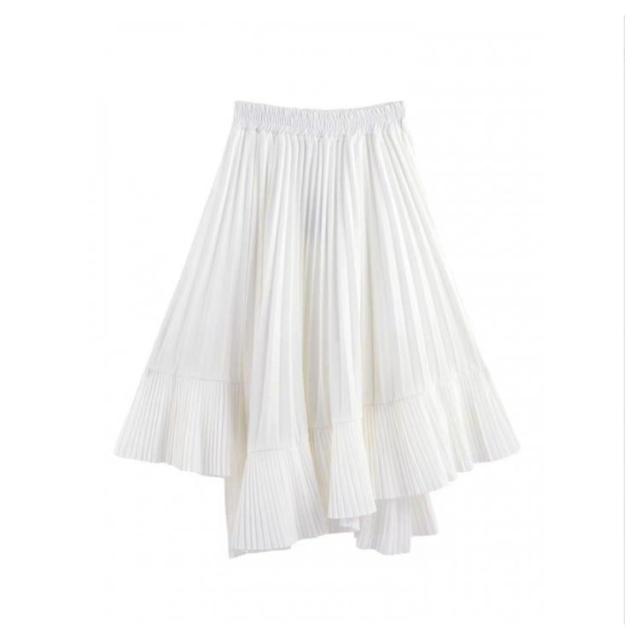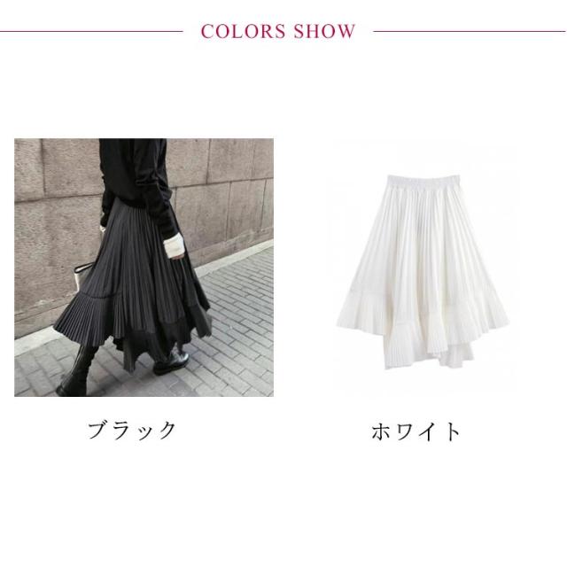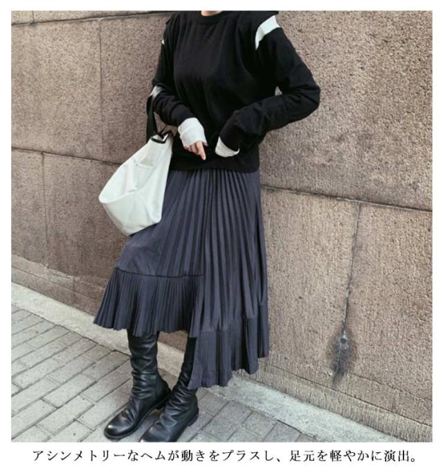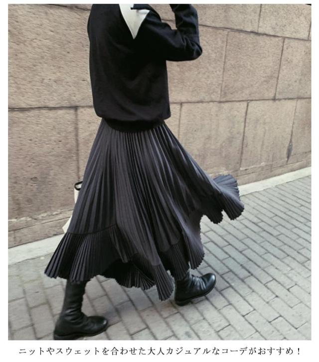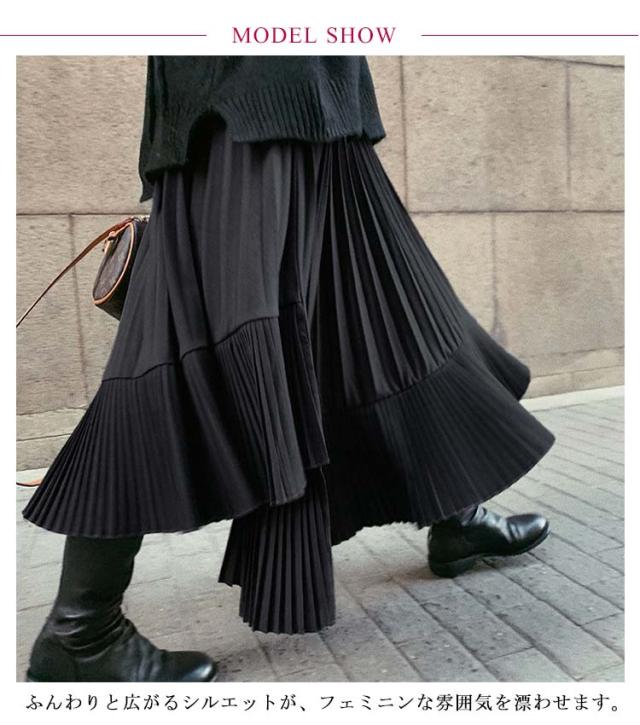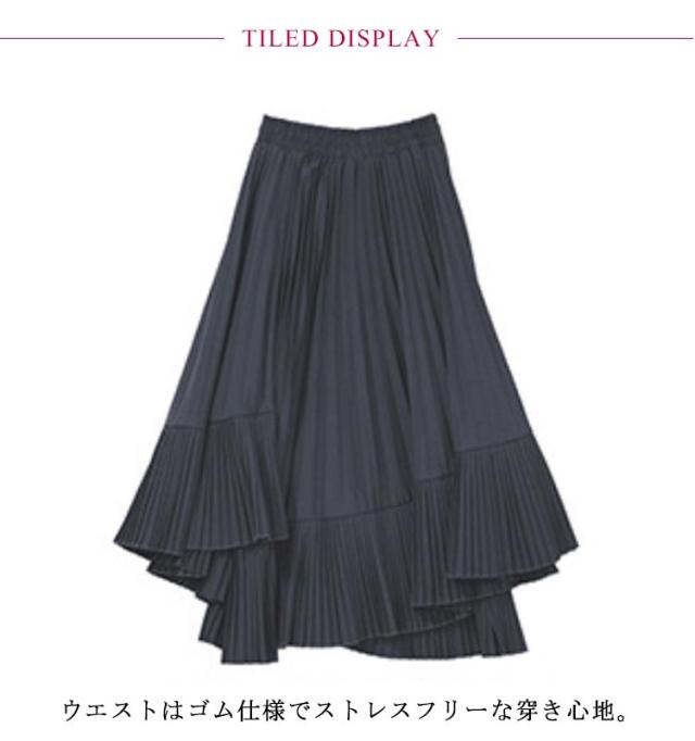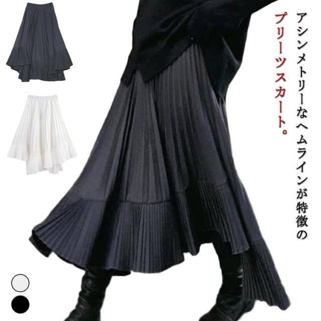 送料無料 アシンメトリー スカート レディース プリーツスカート ロングスカート マキシ丈 ふんわり ロング ボトムス フレアスカート アシンメトリー ヘムライン ウエストゴム Aライン 体型カバー