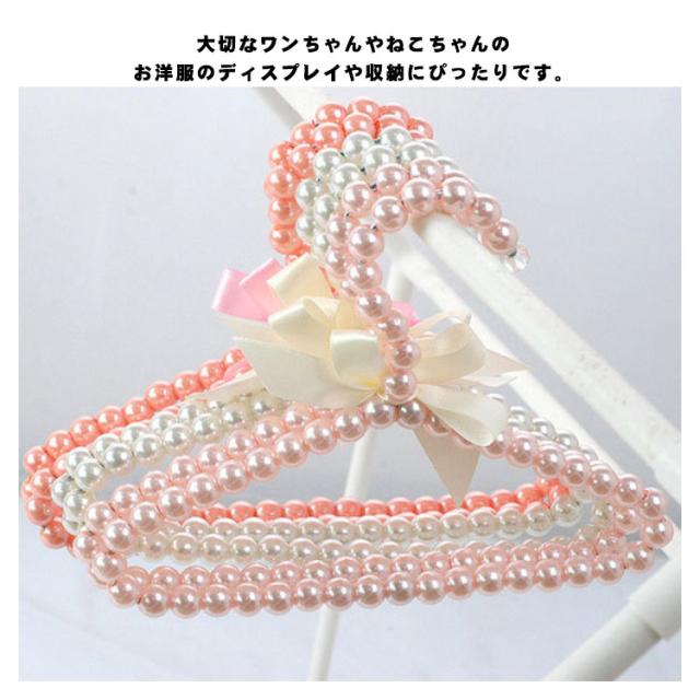 【3本入り】パール ハンガー 20cm 赤ちゃん用 ペット用 衣類ハンガー 猫服 犬服 ハンガー 犬 猫 小型犬 中型犬 小動物服 子供用 お洋服ハンガー 物干しハンガー りぼん付き おしゃれ かわいい 【送料無料】