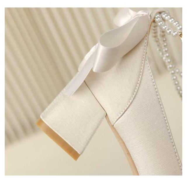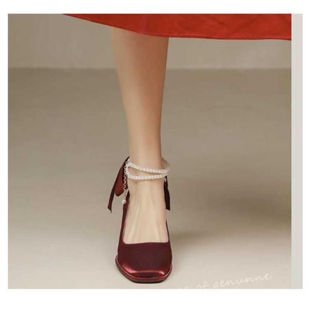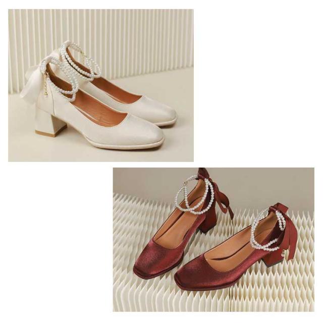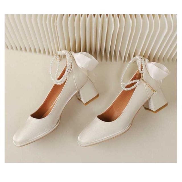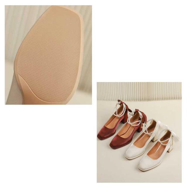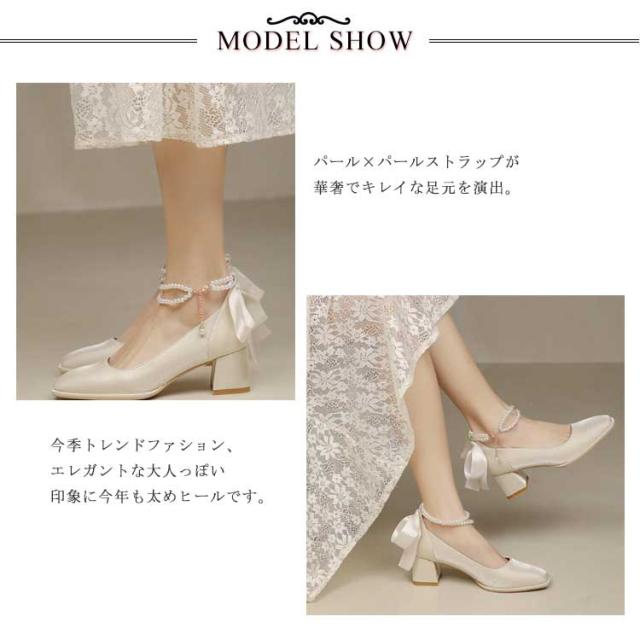 | 履いた瞬間おしゃれ。 今季トレンドファション、エレガントな大人っぽい印象に今年も太めヒールです。 パール×パールストラップが華奢でキレイな足元を演出。 カジュアルからキレイめコーディネートまで幅広く使えます。 サテン調生地だからさわり心地も良く、爪先からかかとまで柔らかい素材を使用しているので足を優しく包み込んでくれます! 歩きやすく、長時間履いても疲れにくいです。 | |