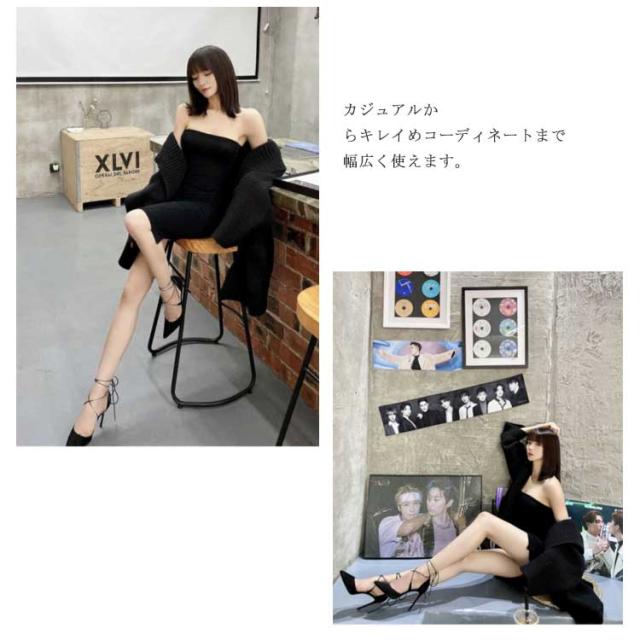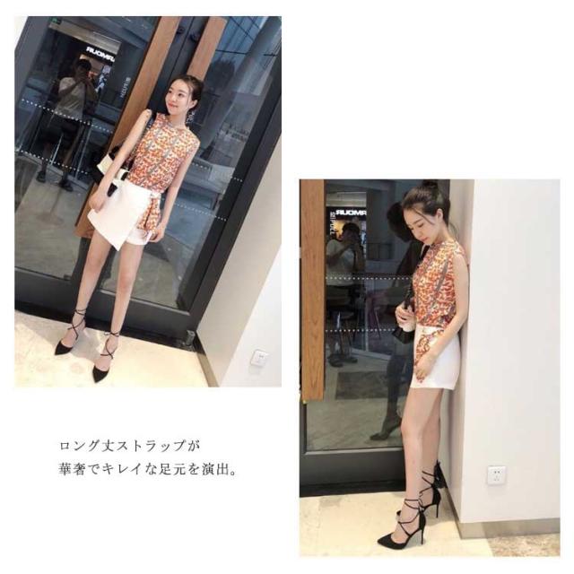 | 履いた瞬間おしゃれ。 今季トレンドファション、女性らしい大人っぽい印象に今年もピンヒールです。 ロング丈ストラップが華奢でキレイな足元を演出。 カジュアルからキレイめコーディネートまで幅広く使えます。 | |