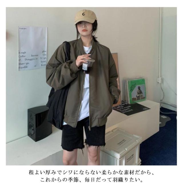 レディース ジャケット 羽織り 上着 大きいサイズ ゆったり ブルゾン 送料無料 ビッグシルエット ジャケット 春 MA-1 ギフト プレゼント 秋 ジャケット ジャンパー アウター レディース ノーカラージャケット エムエーワン ma-1