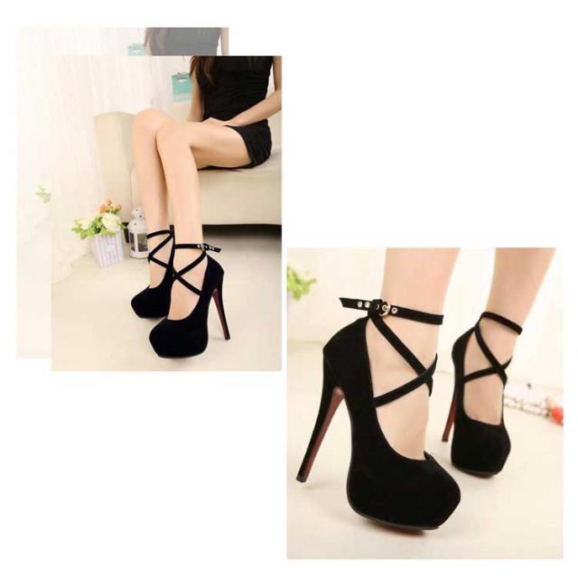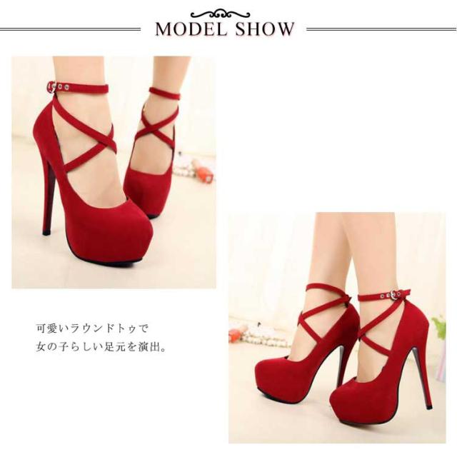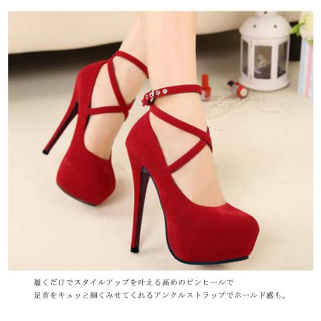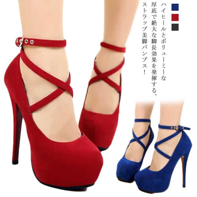 パンプス 厚底 レディース ハイヒール 痛くない 脱げない 歩きやすい 靴 美脚 疲れにくい ラウンドトゥ ピンヒール クロスストラップ アンクルストラップ キャバ ドレス パーティ 22.0-26.0cm