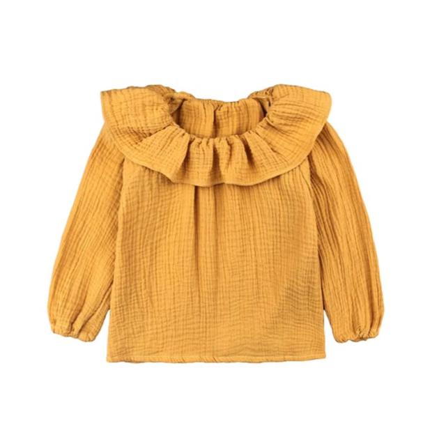 スモックブラウス 長袖 ラッフルカラー プルオーバー 子供用 キッズ トップス ウィンドカフス ドット柄 水玉模様 シンプル 無地 単色 ソリッドカラー おしゃれ 可愛い かわいい 女の子 女児 子供服 子ども服 こども服 80cm 90cm 送料無料