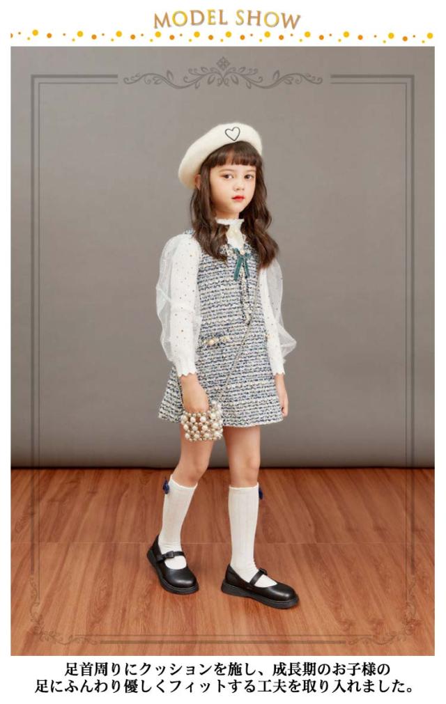 | 履きやすさとデザイン性が抜群の女の子のフォーマルシューズ。 足首周りにクッションを施し、成長期のお子様の足にふんわり優しくフィットする工夫を取り入れました。 走っても脱げないストラップ仕様、ベルクロの留め具で、お子様でも簡単に脱ぎ履き出来ます。 ラウンドトゥで足元から優雅な存在感を演出しながら、お子様の足にも負担のかかりにくいデザインとなっています。 ワンポイントのリボンが可愛い、ドレスや洋服を、更に引き立てます。春、夏、秋にロング季節に活躍してくれる人気アイテム。 七五三 お受験 発表会 入園式 入学式 卒業式 卒園式 葬儀 など、様々なセレモニーに。もちろん通園・通学などの普段使いにもご使用頂けます。 | |
