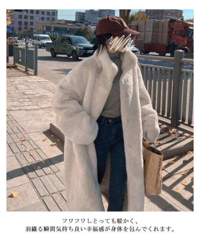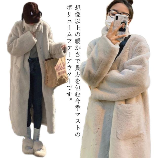 ファーコート ロング丈 エコファー コート ジャケット ボリュームファー レディース ブルゾン ムートンコート チェスターコート ハイネック 長袖 無地 ボタン 軽い 暖かい 可愛い 膝下丈 肌触り 柔らい 毛皮 防寒