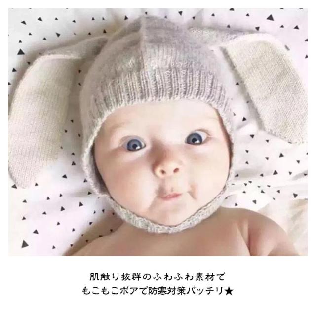 送料無料 ベビー 帽子 うさぎ 冬 耳付き ニット帽子 うさ耳 ベビー キッズ うさぎ耳付き ウサギ 秋冬 男の子 女の子 新生児 うさみみ 赤ちゃん 子供 ベビー服 裏ボア 裏起毛 ボア帽子 あったか かわいい 可愛い 保育園 出産祝い ギフト プレゼント