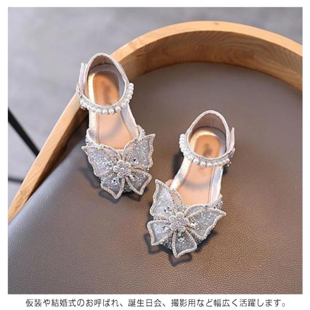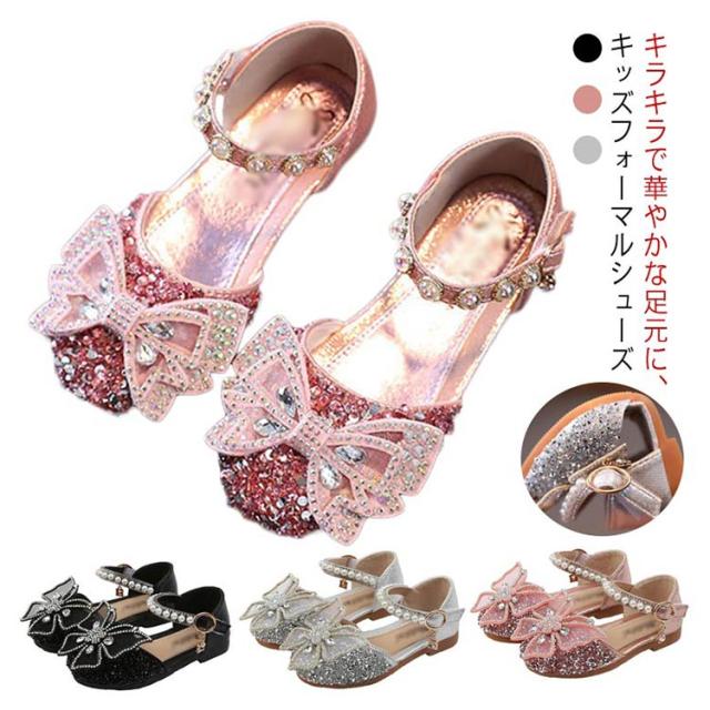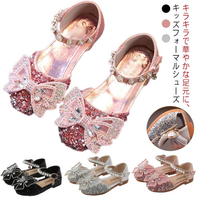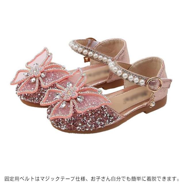 キラキラ ドレスシューズ 女の子 フォーマルシューズ 子供靴 キッズ靴 かわいい フラット ガールズ 発表会 入学式 卒業式 入園式 結婚式 お呼ばれ 七五三 演出靴 滑り止め 履きやすい フェイクパール ストラップ 蝶結び ギフト プレゼント 送料無料