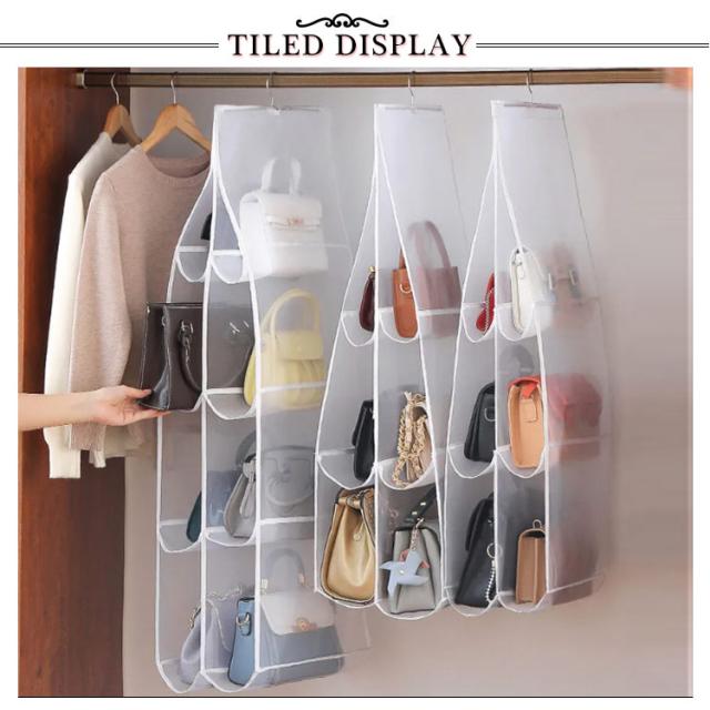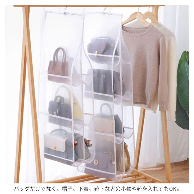 バッグ収納 吊り下げ ハンガー クローゼット収納 無地 中身可視 防塵 カビ防止 通気 北欧 バッグ収納ホルダー 洗える カバン収納 フック付き クローゼット ラック 壁掛け 整理整頓 型崩れ防止 お片付け 大容量 軽量 プレゼント ギフト 送料無料