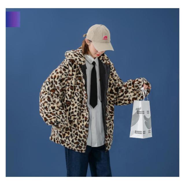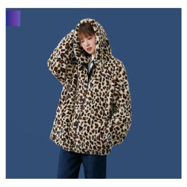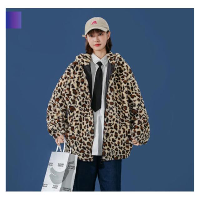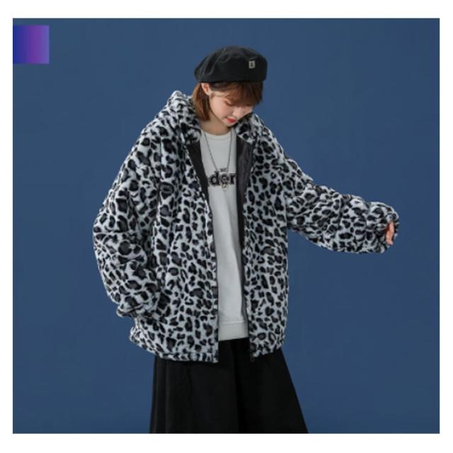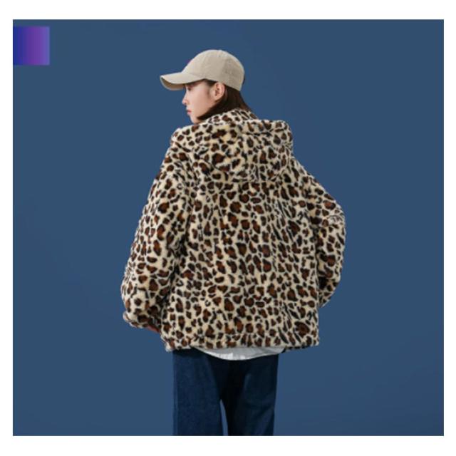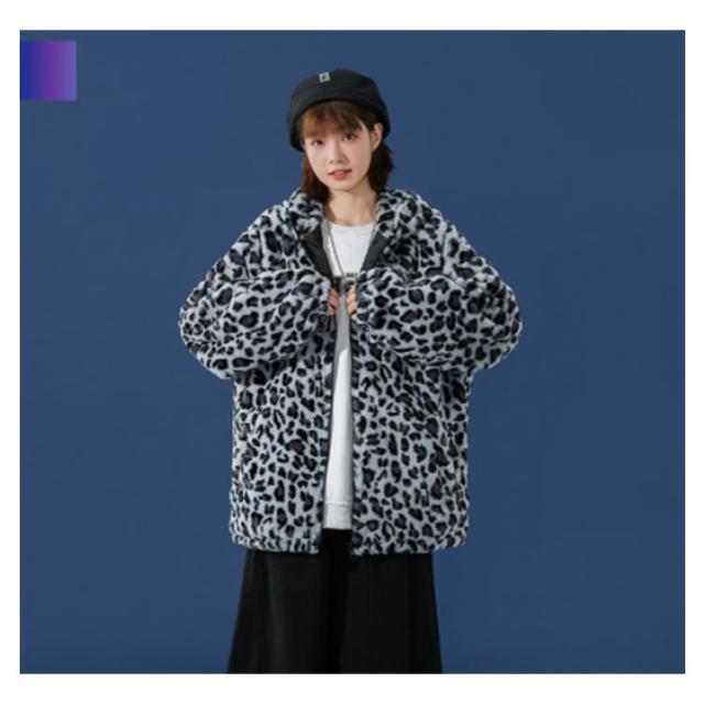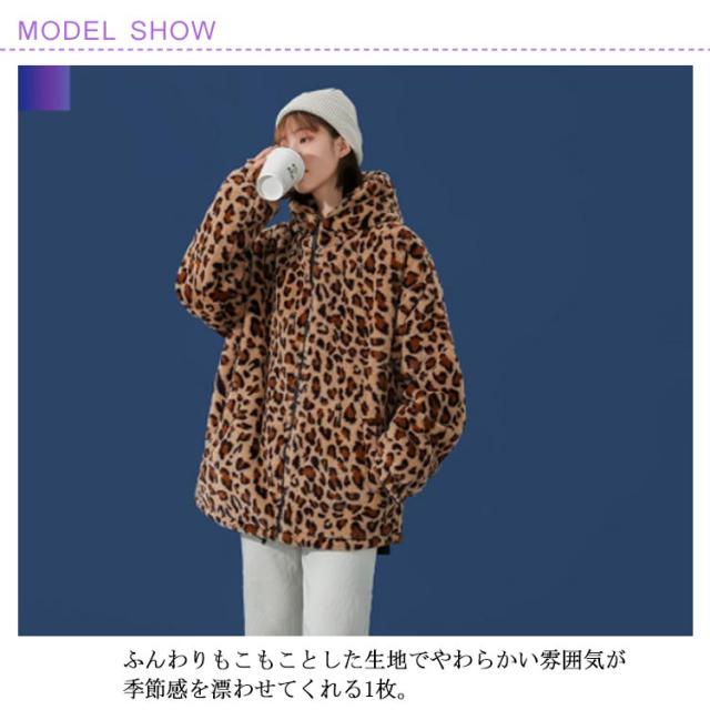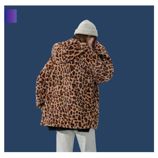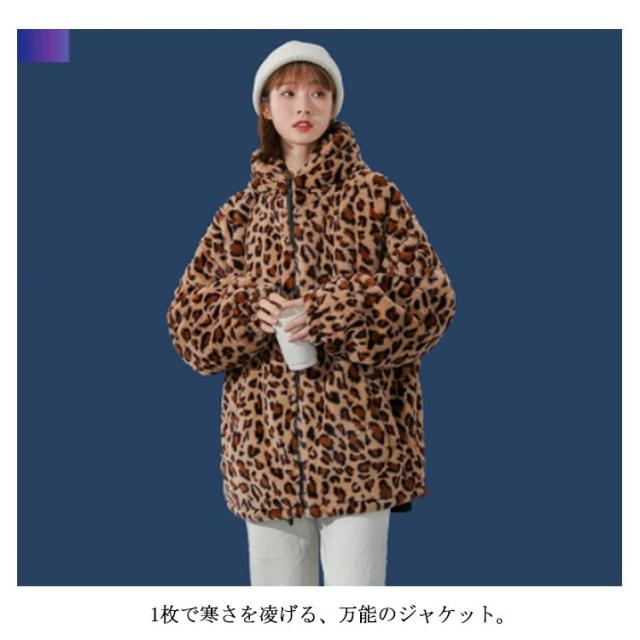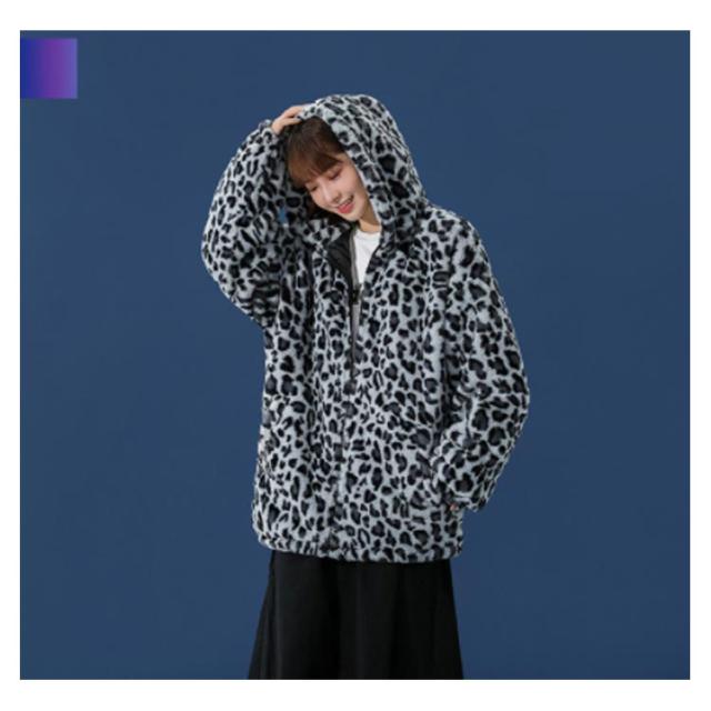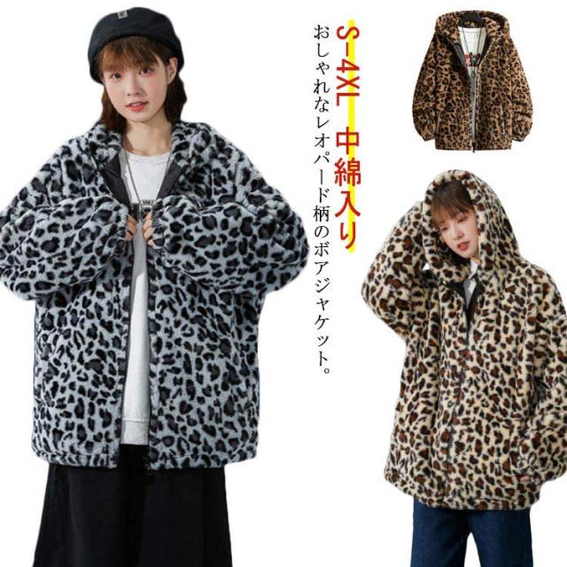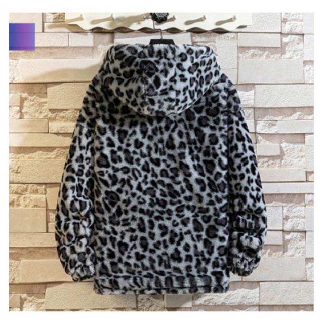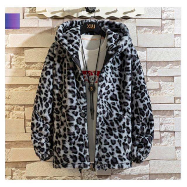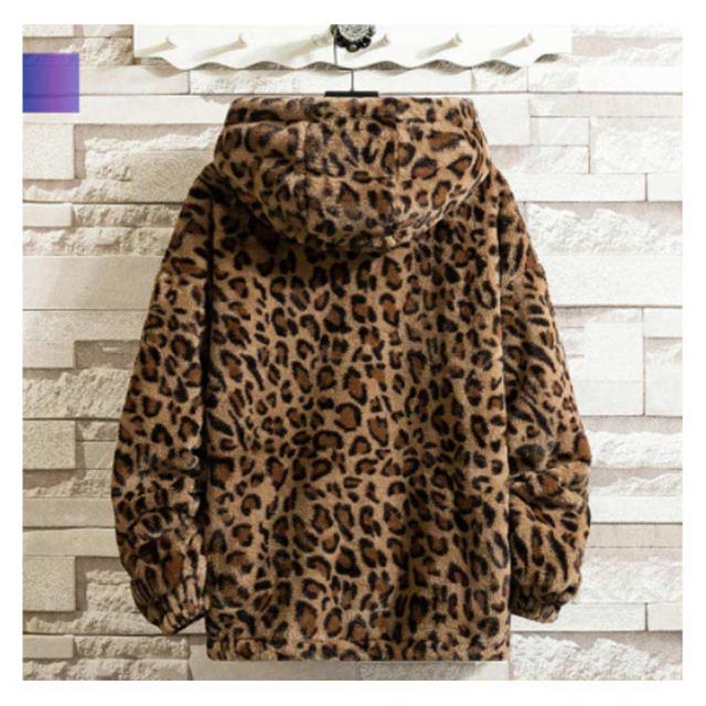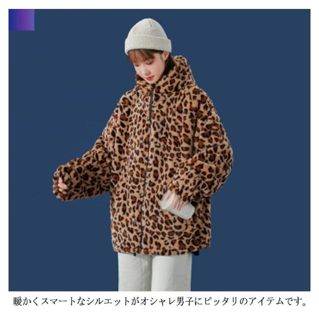 ムートンジャケット ジップアップブルゾン メンズジャケット ボアジャケット レオパード柄 ヒョウ柄 もこもこ ブルゾン 厚手 防寒 中綿入り 中綿 パーカー ボアコート 韓国 原宿
