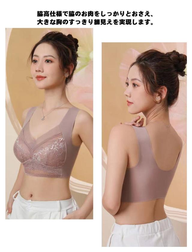 ブラジャー 胸を小さく見せるブラ 小さく見せるブラジャー ノンワイヤー ノンワイヤーブラジャー レースブラジャー シームレスブラ シームレスブラジャー 脇高 補正下着 脇肉 背中 スッキリ 着?せブラ 下着 大きいサイズ