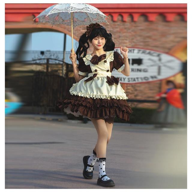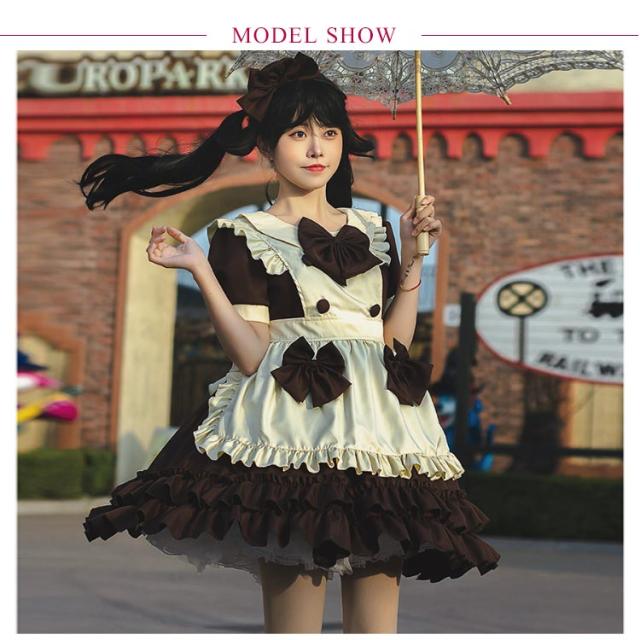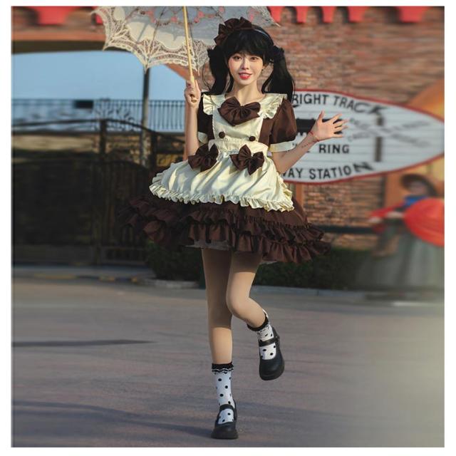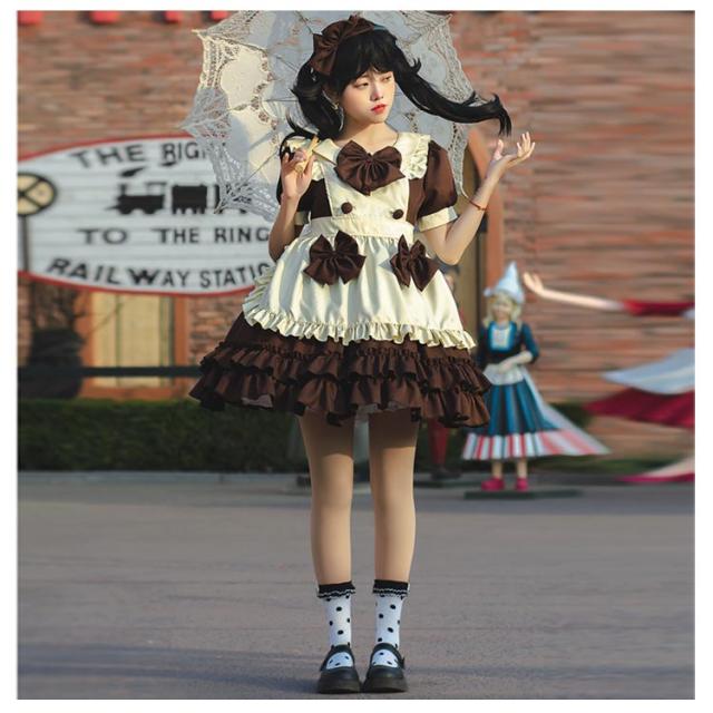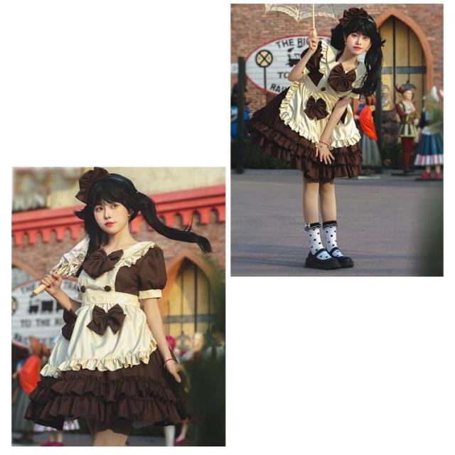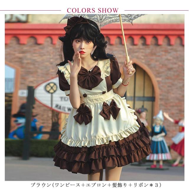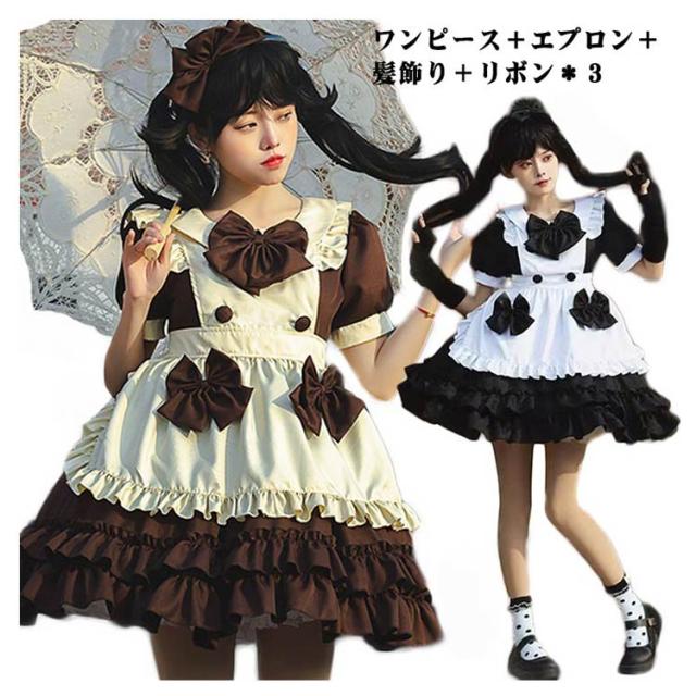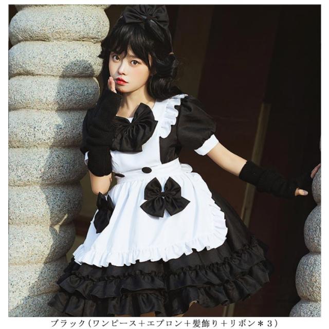 送料無料 メイド服 ロリータ ワンピース 半袖 コスプレメイド服 コスプレ衣装 フルセット エプロン 髪飾り こすぷれ コス コスチューム 仮装 衣装 メイド衣装 ウェイトレス ワンピ ゴスロリ cosplay メイド服 文化祭 学園祭 衣装 パーティー イベント 可愛い ハロウィン