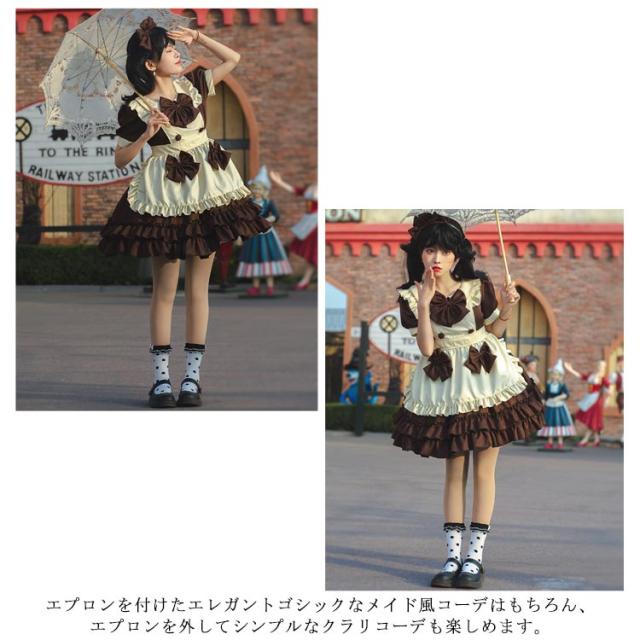 | ワンピース+エプロン+髪飾り+リボン*3 エプロンを付けたエレガントゴシックなメイド風コーデはもちろん、エプロンを外してシンプルなクラリコーデも楽しめます。 | |