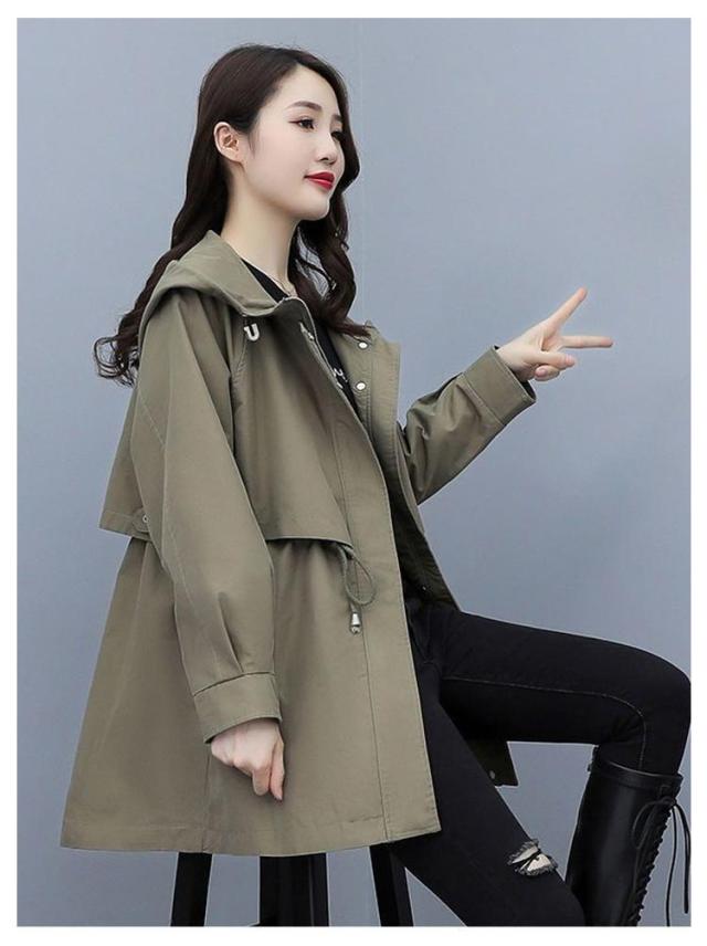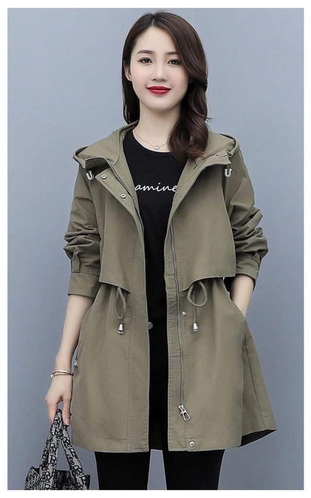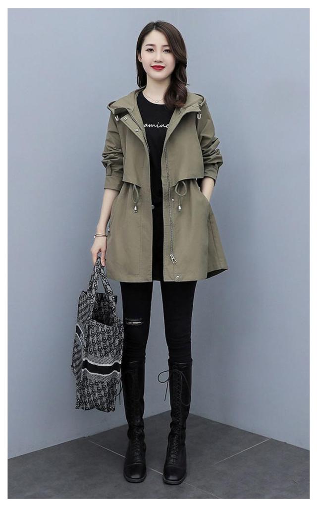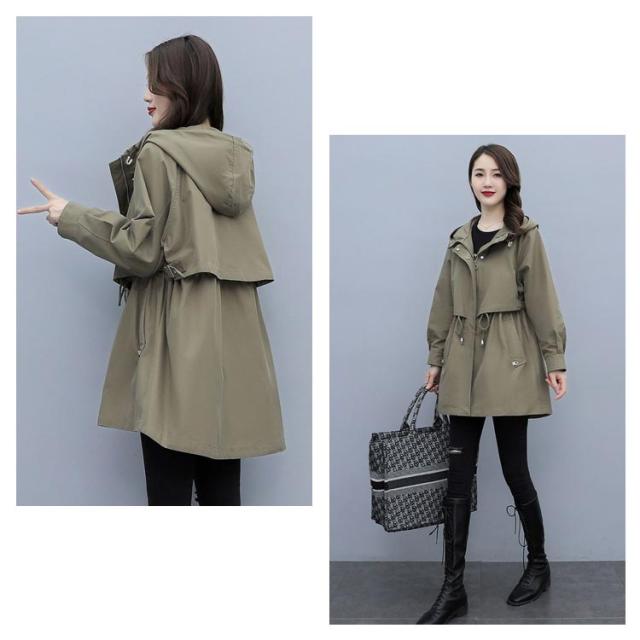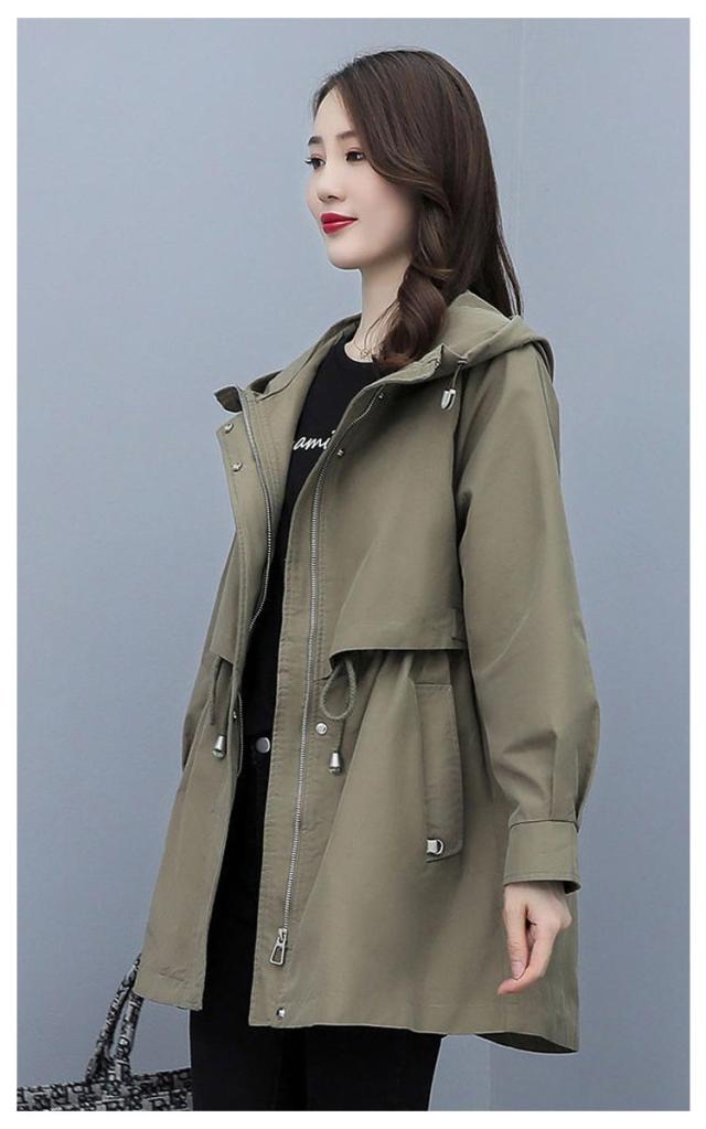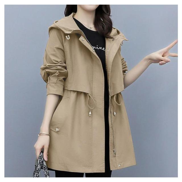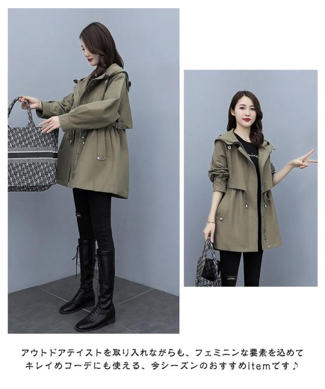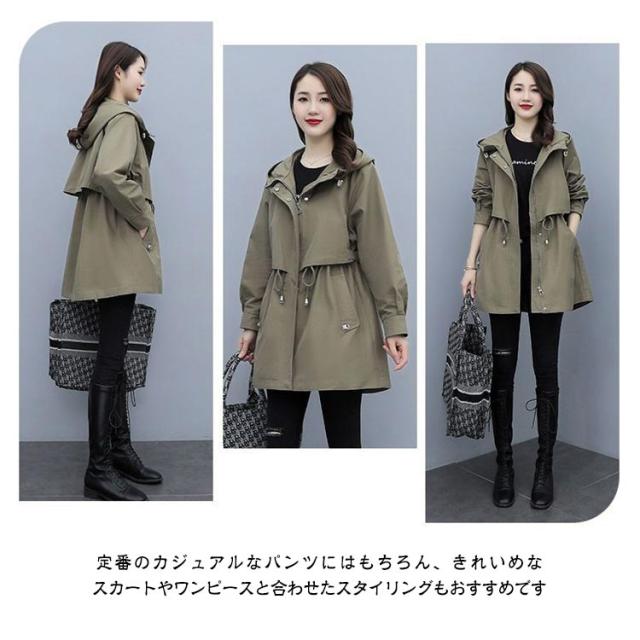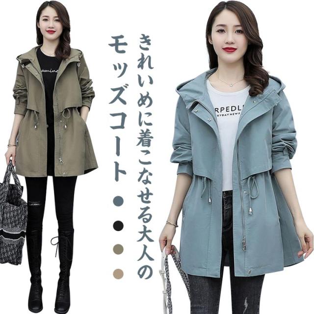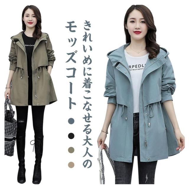 春コート モッズコート レディース ミドル丈 春アウター ウエストドロスト 長袖 ジップアップ ポケット付き フード付き 前開き ライトアウアー 体型カバー おしゃれ きれいめ カジュアル 大人 春 秋 無地 全4色