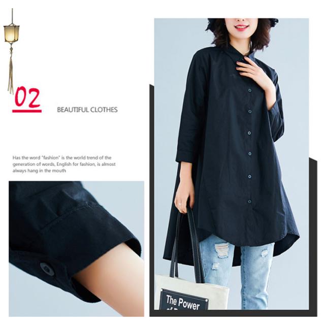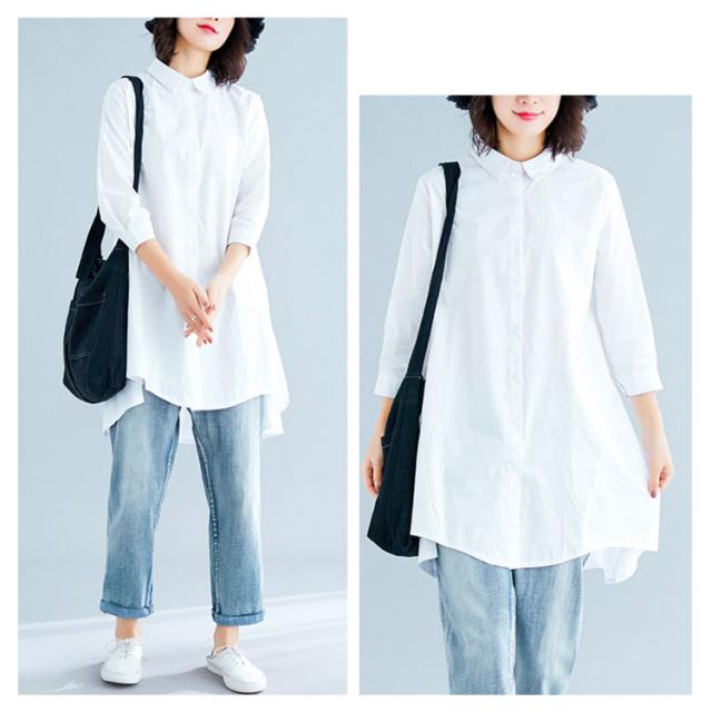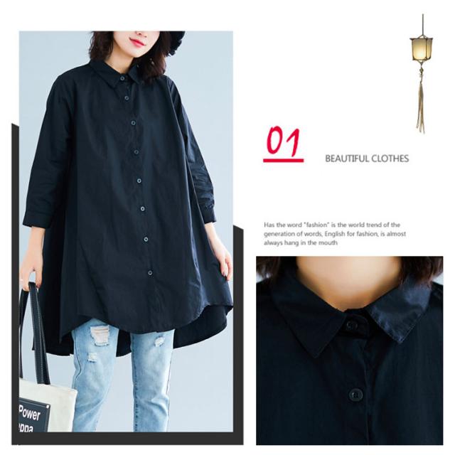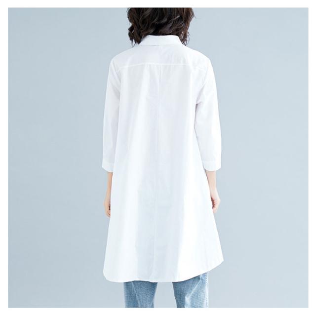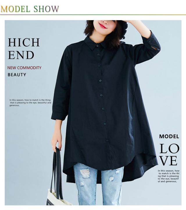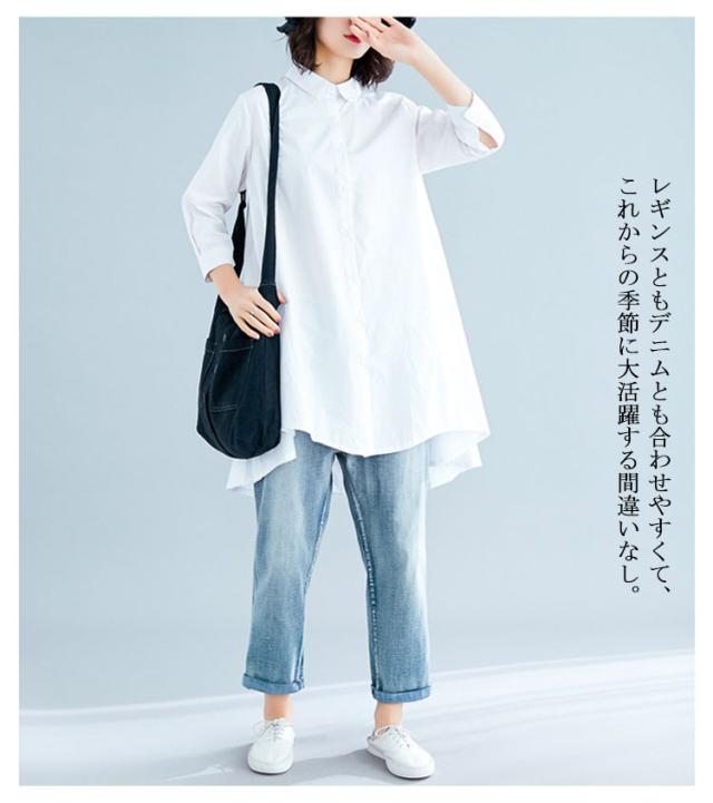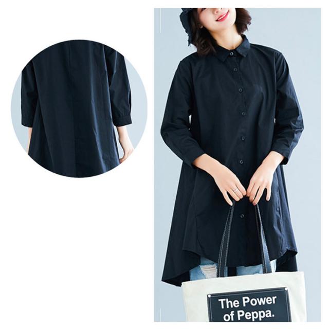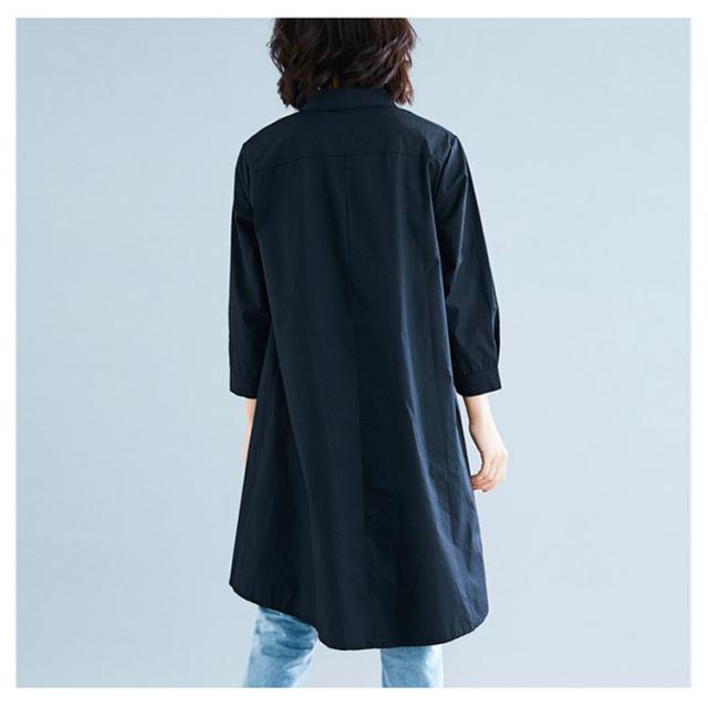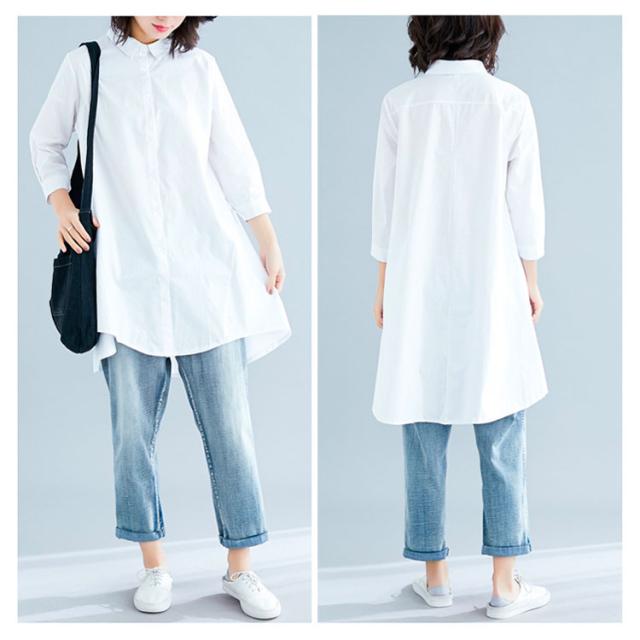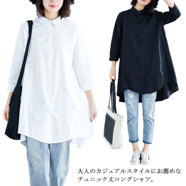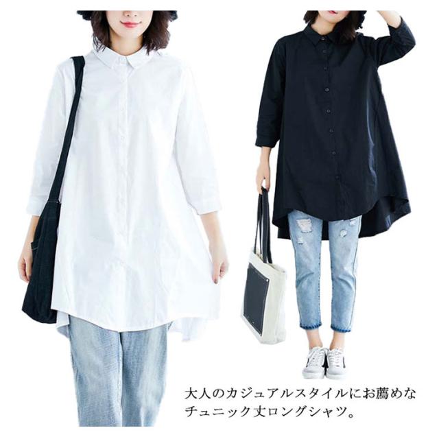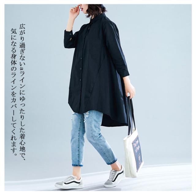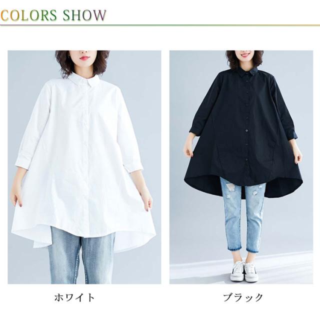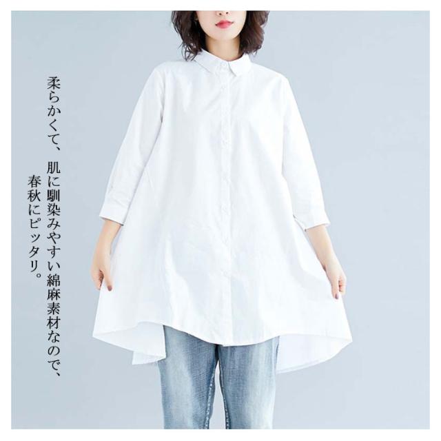 ロングシャツ チュニック 長袖 送料無料 レディース シャツ 春秋 秋物 フォーマル 綿麻 コットン リネン Aライン 無地 ボタン付き 前開き 前後差 トップス アシメトリー アウター 白 ホワイト 黒 ブラック 体型カバー 大きめ 羽織り 無地 シンプル レイヤード