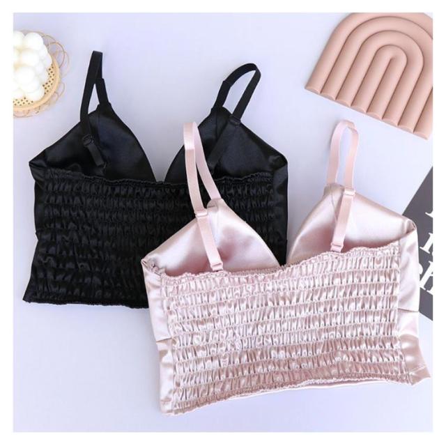 【送料無料】サテン シルクタッチ ベアトップ ビスチェ ベアビスチェ トップス ノースリーブ タンクトップ 下着 レディース ブラ ブラジャー ブラトップ キャミソール ノンワイヤーブラ 締め付けない 楽 ノンワイヤー 無地 かわいい 女性 脇肉