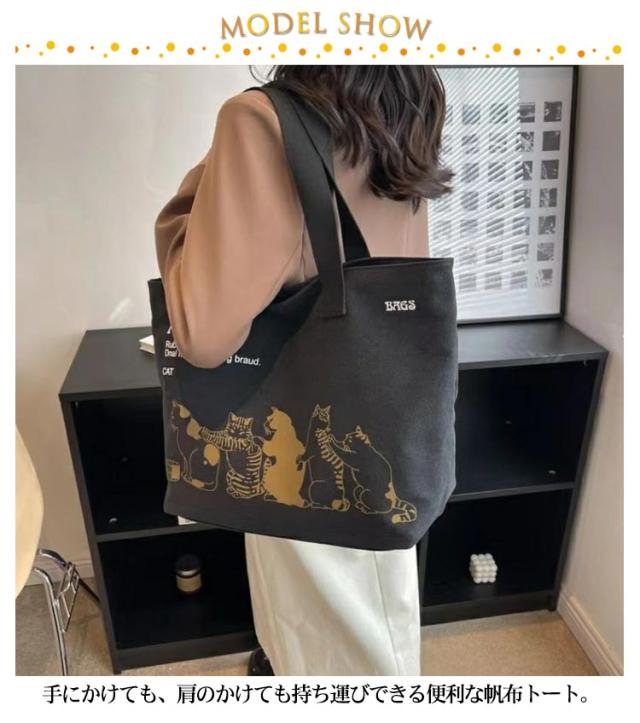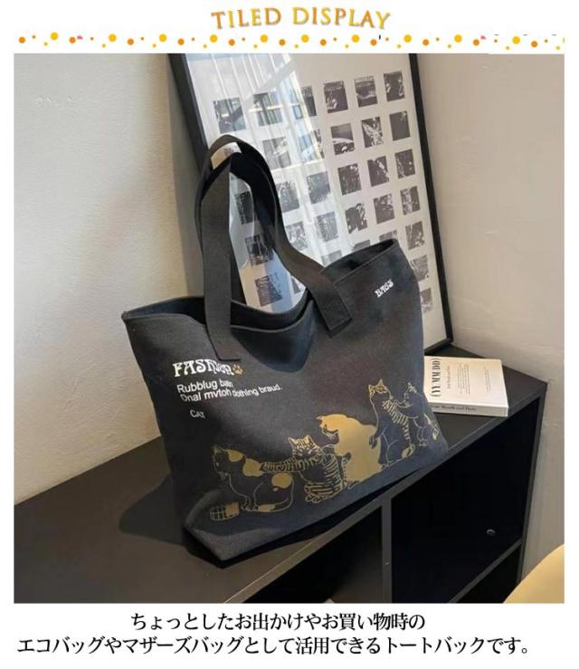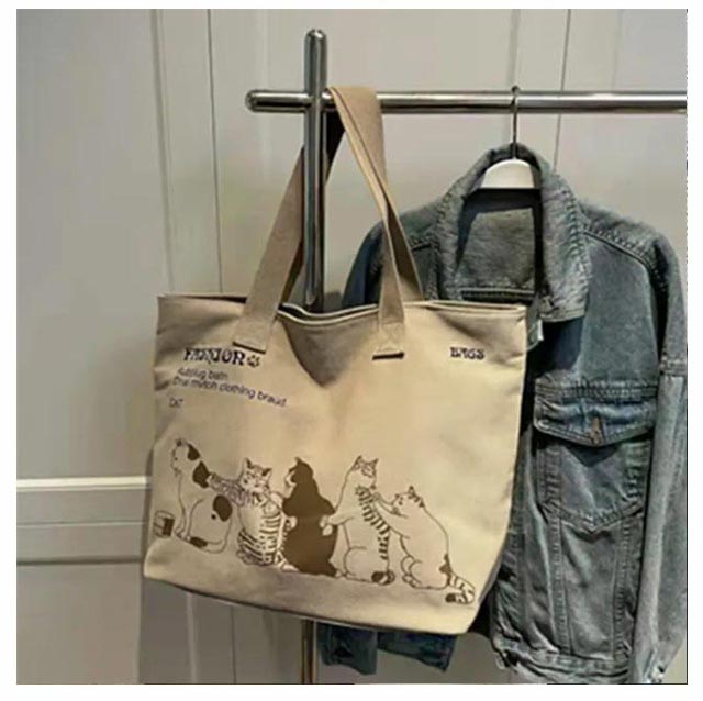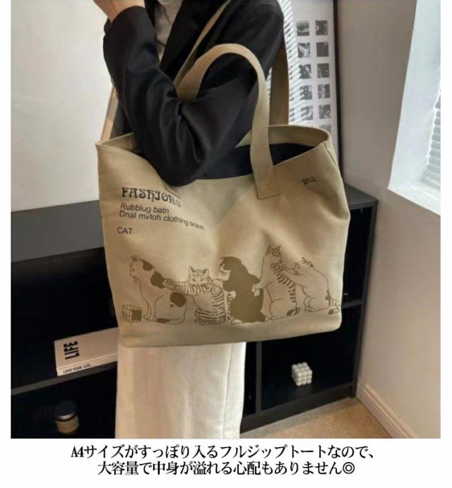 | シンプルで可愛いキャンバストートバッグ。 手にかけても、肩のかけても持ち運びできる便利な帆布トート。 可愛いネコちゃんが並んでいる姿に心が惹かれる。 A4サイズがすっぽり入るフルジップトートなので、大容量で中身が溢れる心配もありません◎ ちょっとしたお出かけやお買い物時のエコバッグやマザーズバッグとして活用できるトートバックです。 | |