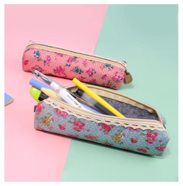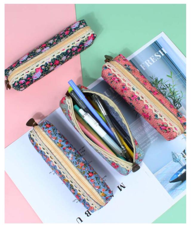 選べる2個セット ペンケース 布製 かわいい おしゃれ 花柄 スリム ペンポーチ 筆箱 小さい コンパクト 送料無料 レース 筆入れ 女子 新学期 お祝い プチギフト プレゼント 文房具 社会人 大学生 高校生 中学生 レディース
