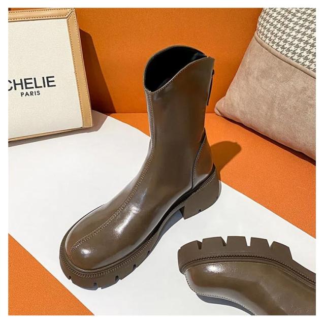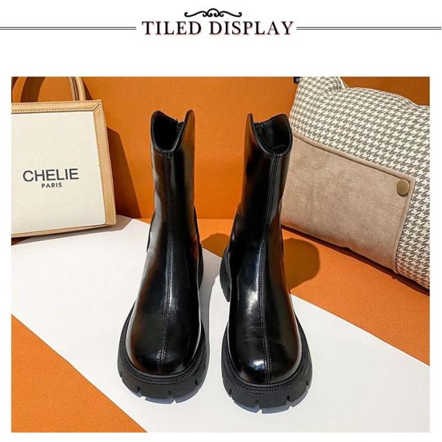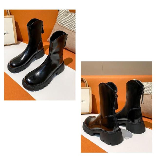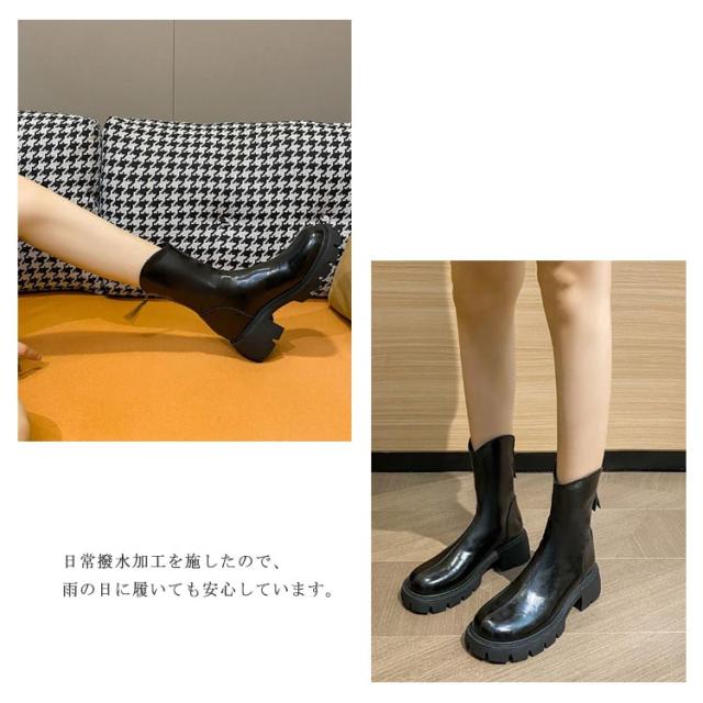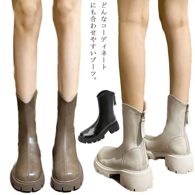 厚底 ブーツ レディース ショートブーツ アンクル シークレットシューズ 厚底靴 ブーティー 靴 Vカット 厚底ブーツ フェイクレザー バックジップ 歩きやすい シークレットインソール 美脚 韓国 カジュアル 22.5-25.0cm