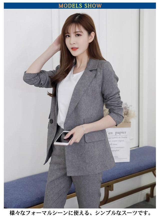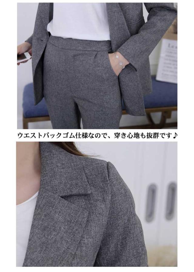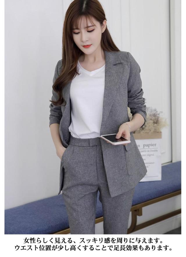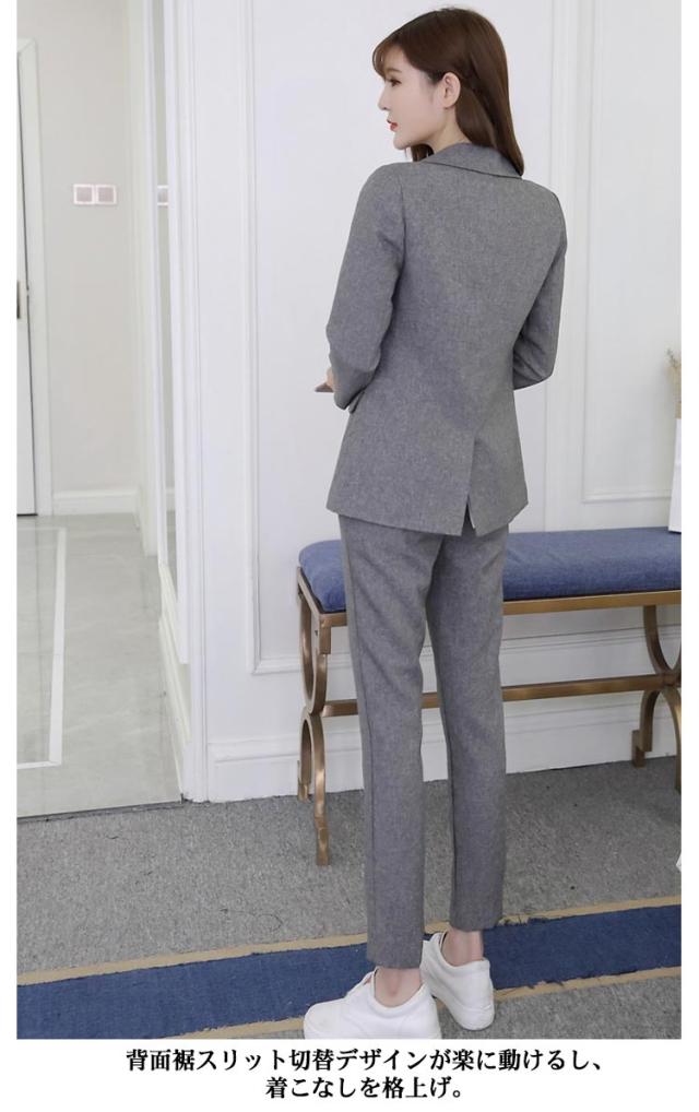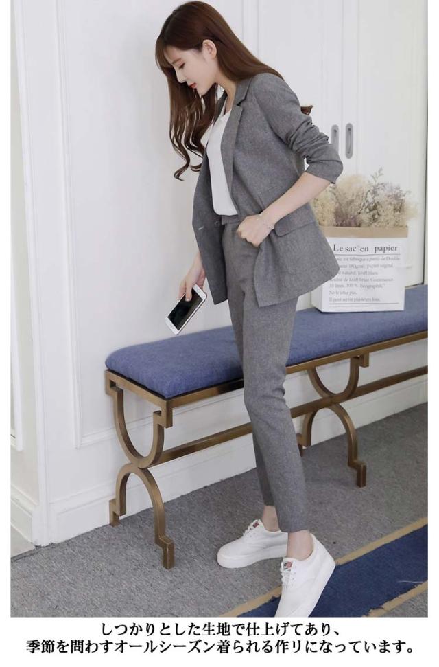 セットアップ 2点セット パンツスーツ レディース スーツ 上下セット フォーマル 長袖 ジャケット アンクルパンツ ロングパンツ セレモニースーツ 冠婚葬祭 春秋冬 入学式 卒業式 結婚式 通勤 OL 女性らしい 20代 30代 40代 黒 グレー