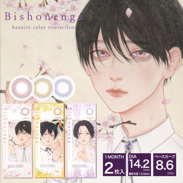 カラコン Bishonenga hanairo Illustration by mumei 1ヶ月 mumei 1箱2枚 度あり 度なし 美少年画 イラストレーション はないろ マンスリー ワンマンス 桜 金木犀 藤 カラー コンタクトレンズ コスプレ アニメ