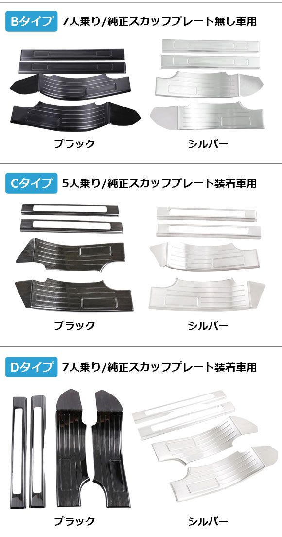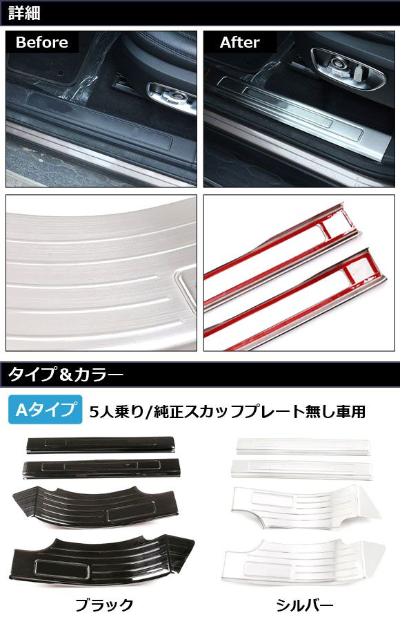 スカッフプレート 内側 ランドローバー ディスカバリースポーツ LC2A/LC2XB/LC2NB/LC2XC/LC2NC/LC2ND 5人乗り/純正スカッフプレート無し車用 シルバー タイプA ステンレス製 入数:1セット(4個) AP-SG265-A-SI