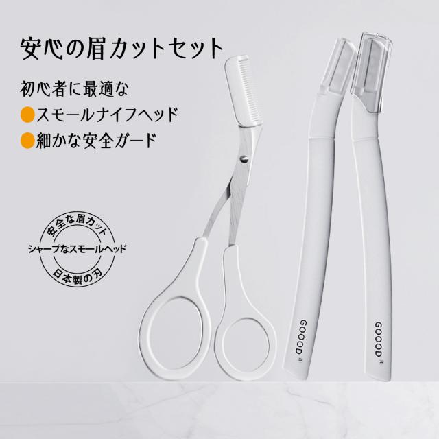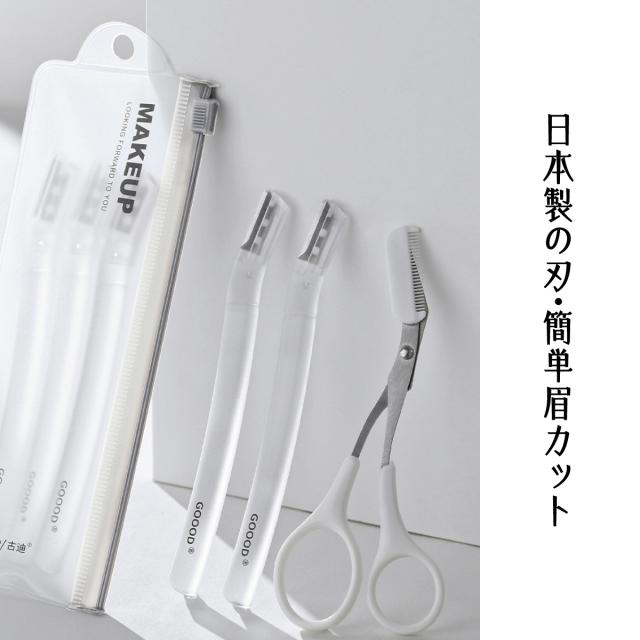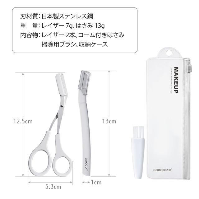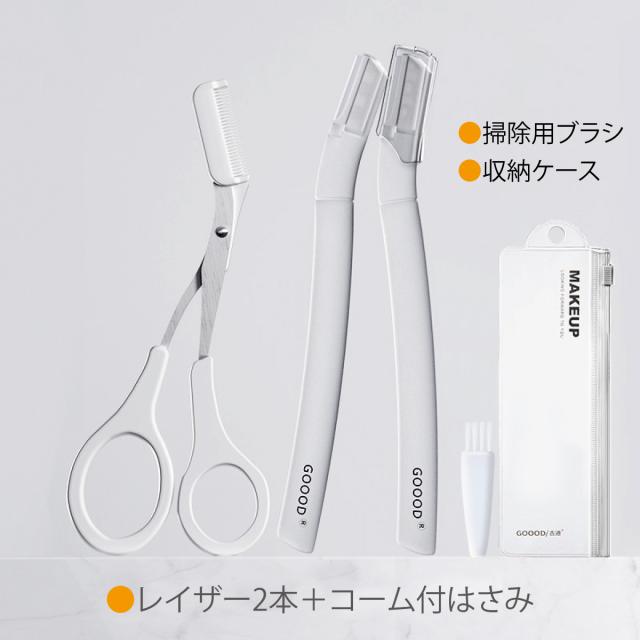 眉毛シェーバー まゆげ シェーバー セット コーム付はさみ シェーバー2本 掃除用ブラシ 収納ケース レディース おしゃれ コスメ商品 eyeblow-set