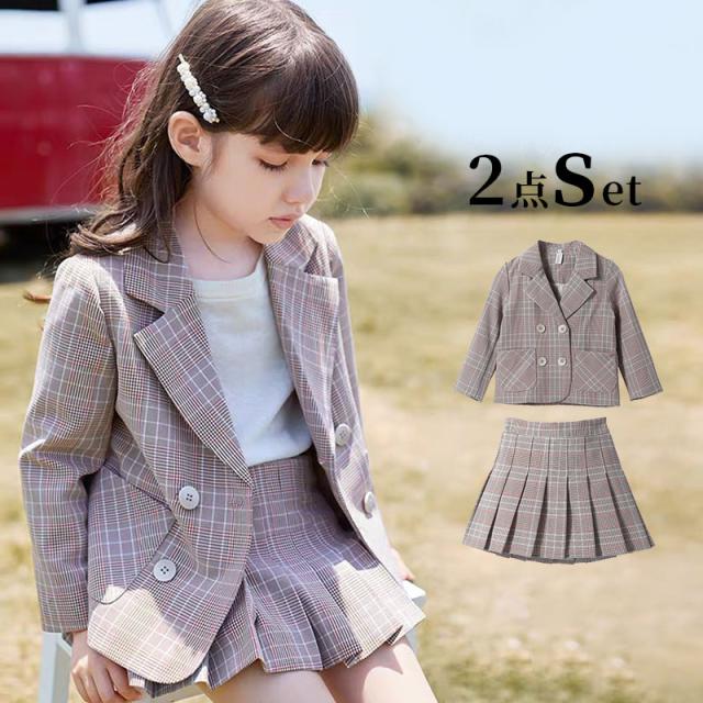 【水曜日まで!10%クーポン配布中】 卒業式 小学校 女子 スーツ 2点セット 上下セット 入園式 スカート チェック柄 結婚式 キッズフォーマル 子供服 発表会 フォーマル 入学式 卒園式
