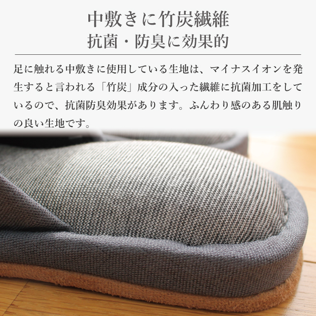 ■特徴 竹炭生地をインソールに使用し、抗菌加工をしております。