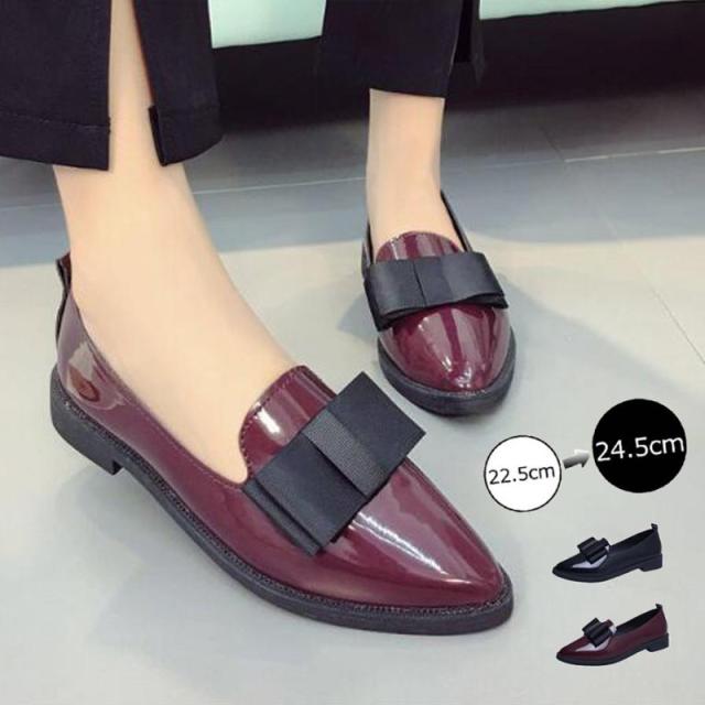 半額セール パンプス レディース ローファー ポインテッドトゥ ローヒール 蝶結び シューズ モカシン シンプル カジュアル 春秋