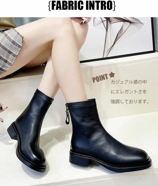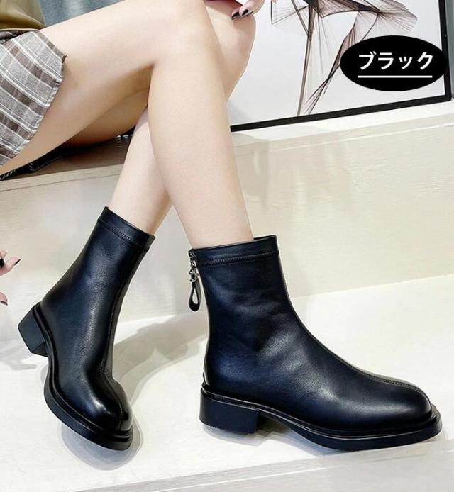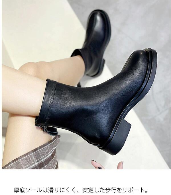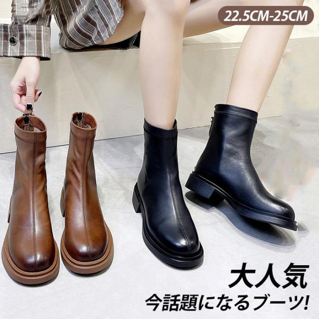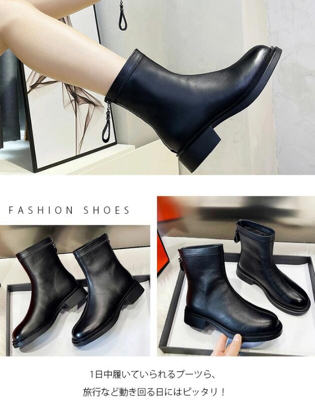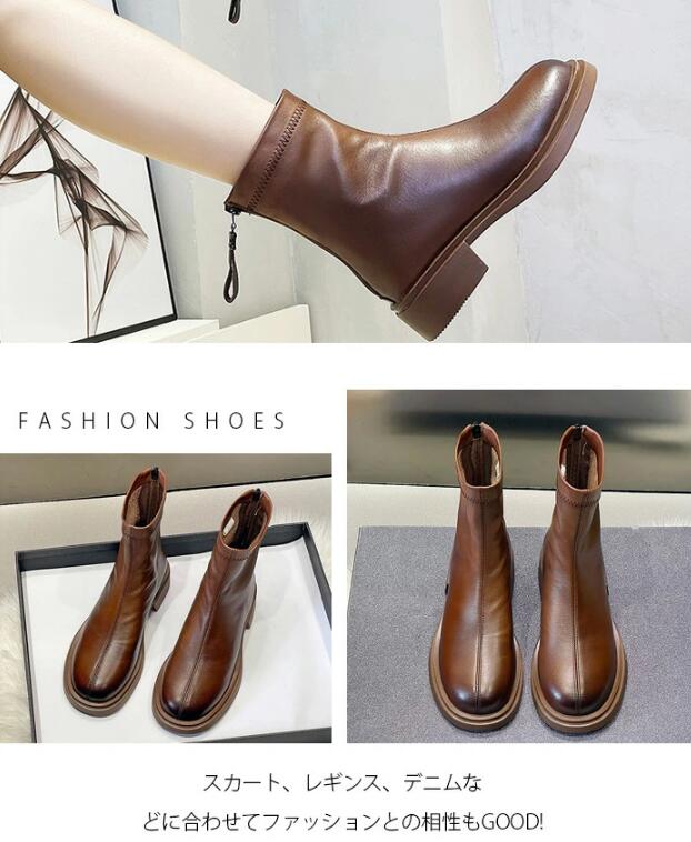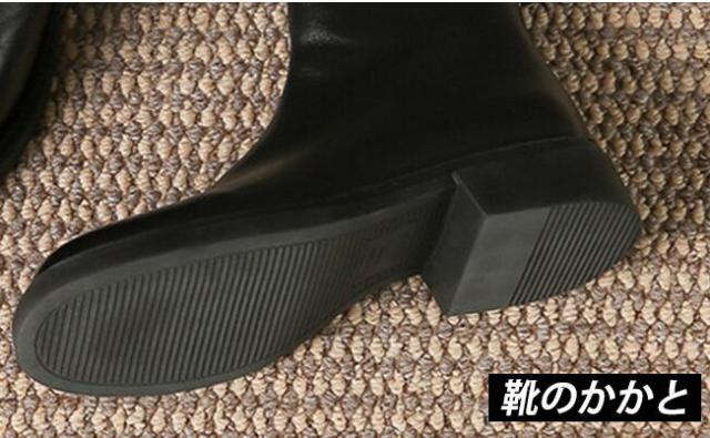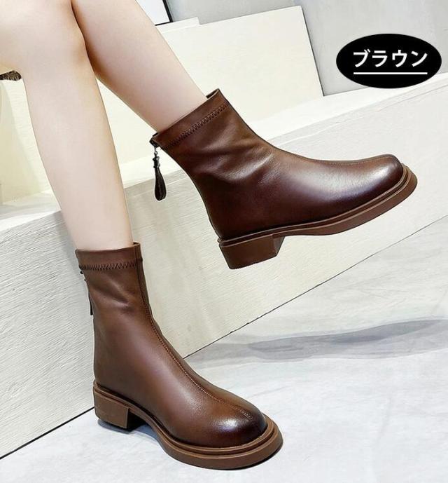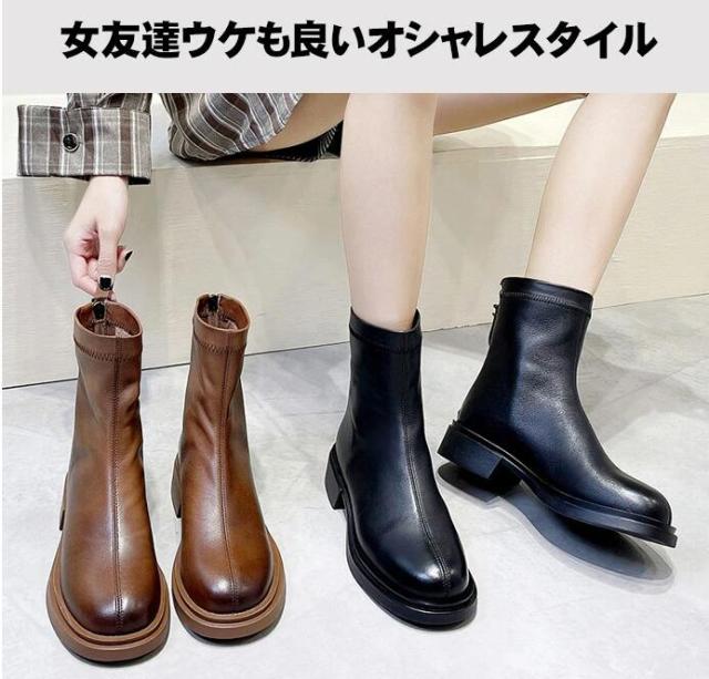 本革 ブーツ レディース 紐なし 黒 太ヒール ロング 抜水 ミドルブーツ 柔らかい 疲れない 厚底 アンクルブーツ 軽量 幅広 つま先 広い 裏起毛