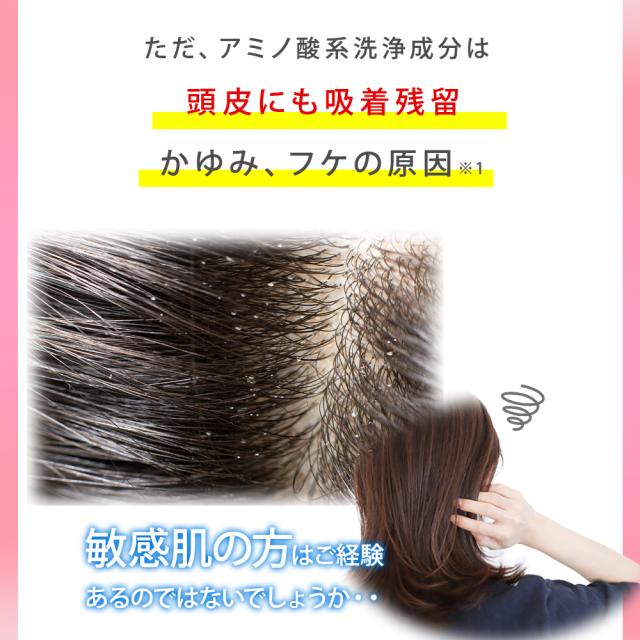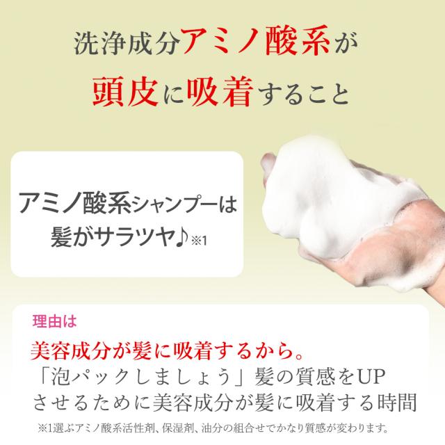 | 使用方法 | 髪をよく濡らしてから流し適量を手のひらにのばしてから髪全体に泡立てて丁寧に洗った後、ぬるま湯でしっかり洗い流してください。 |
