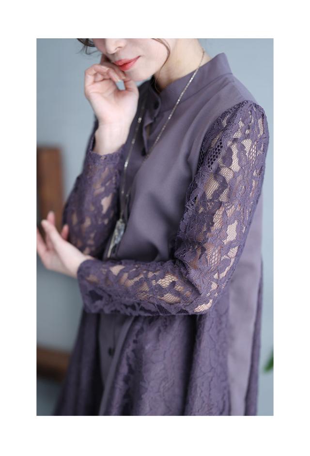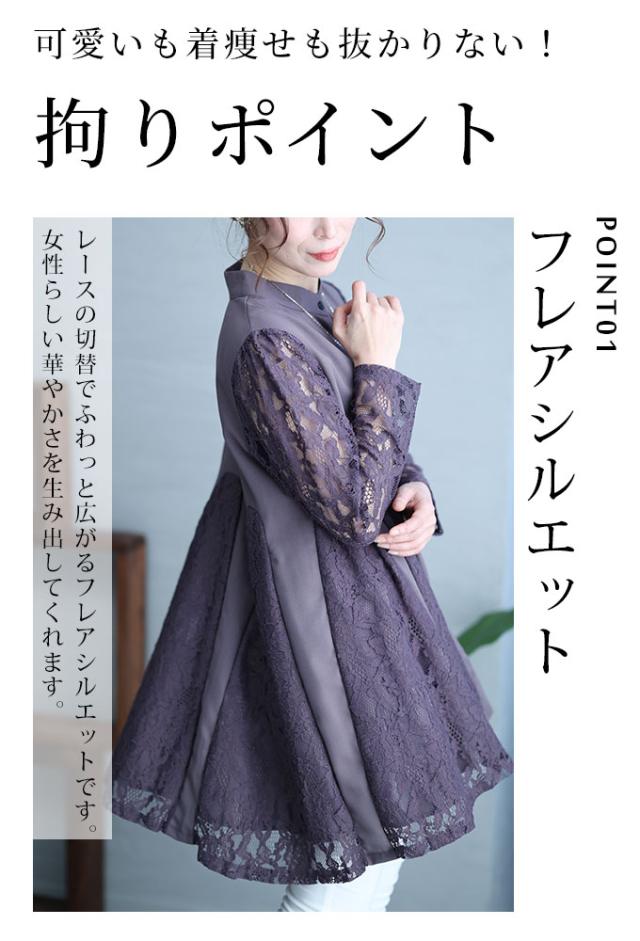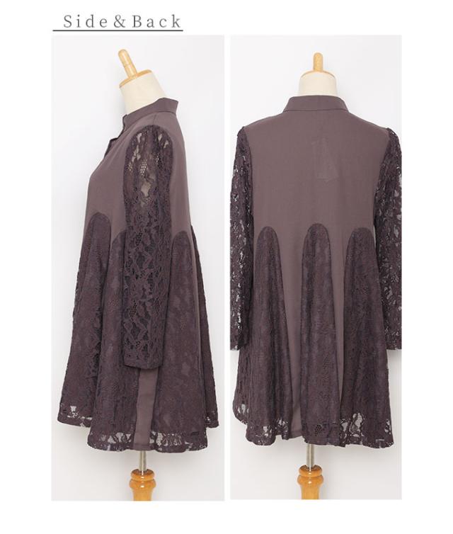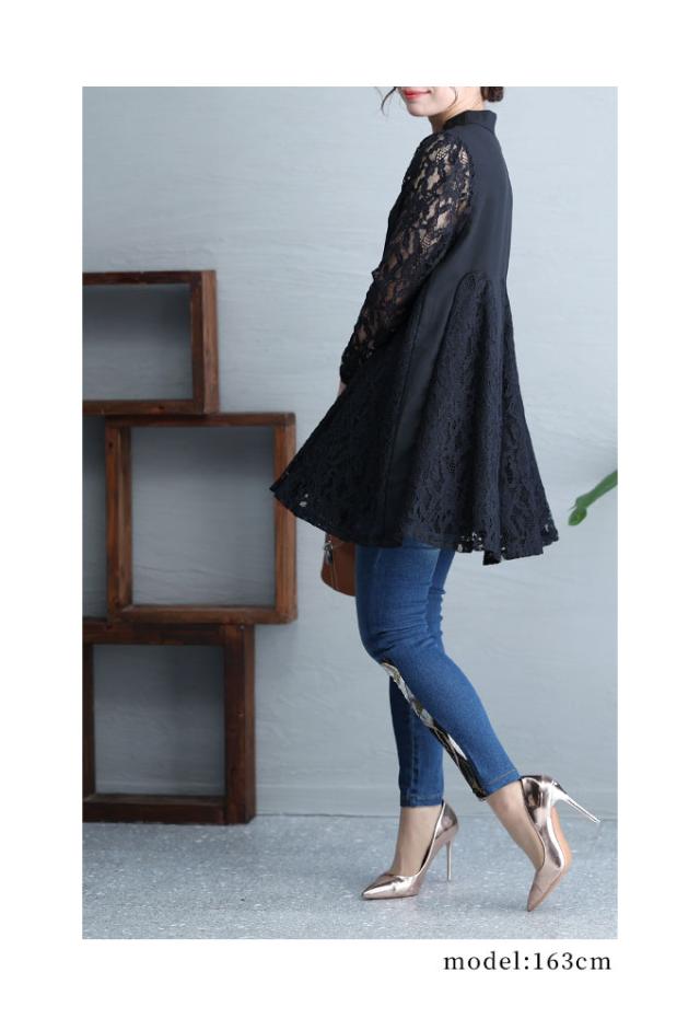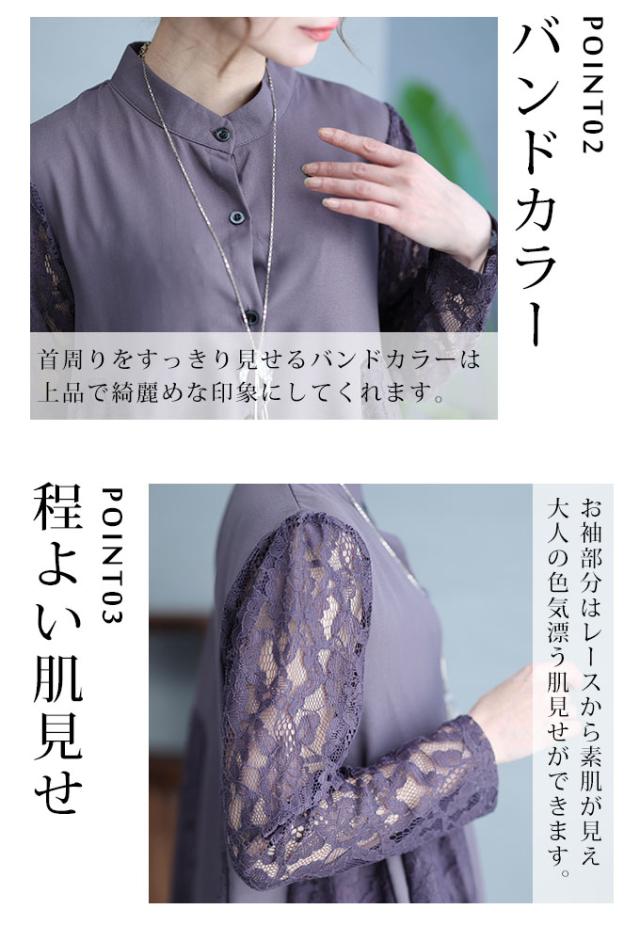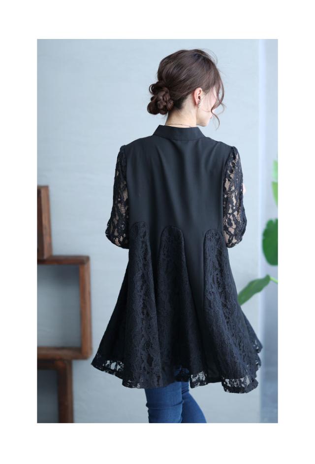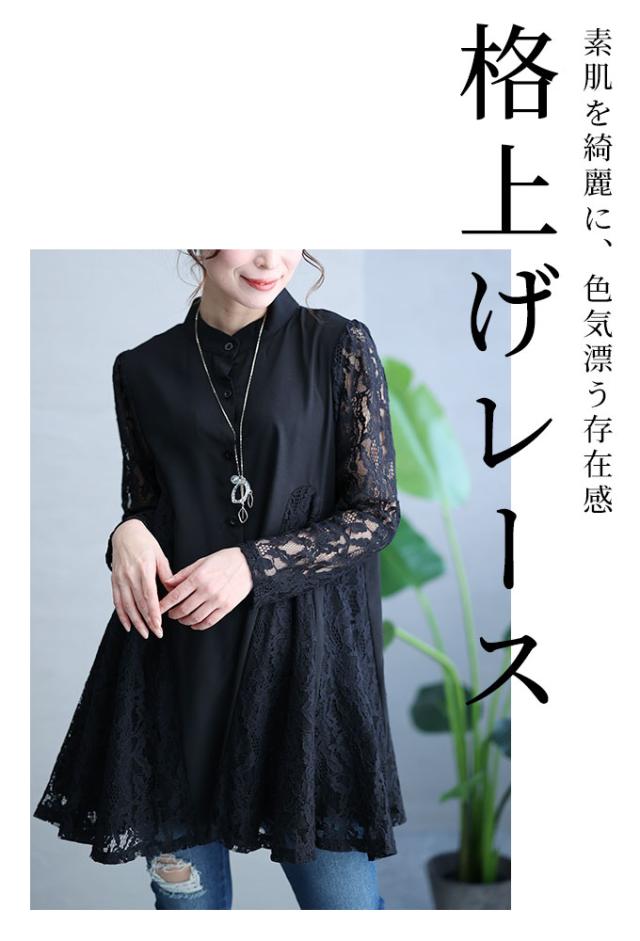 春新作 エレガントなレースを纏う切替フレアシャツチュニック レディース ファッション トップス チュニック ブラウス 黒 春 大人可愛い 40代 レディースファッション 50代女性 ファッション 60代 ミセスファッション サワアラモード sawa a la mode otona mode-8426