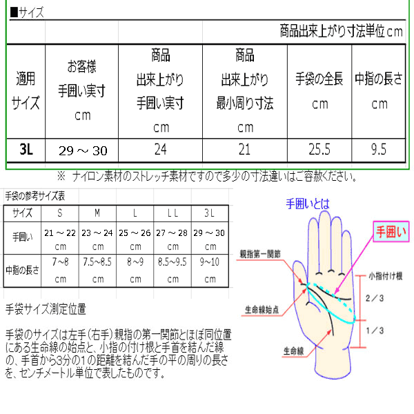 ■3Lサイズはきわめて手の大きい男性サイズです。