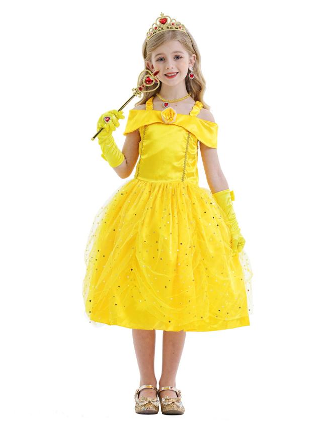 プリンセス ドレス 子供 仮装 女の子 コスチューム 衣装 コスプレ プレゼント リトルプリンセス イエロー 黄色 ベル 美女と野獣 103