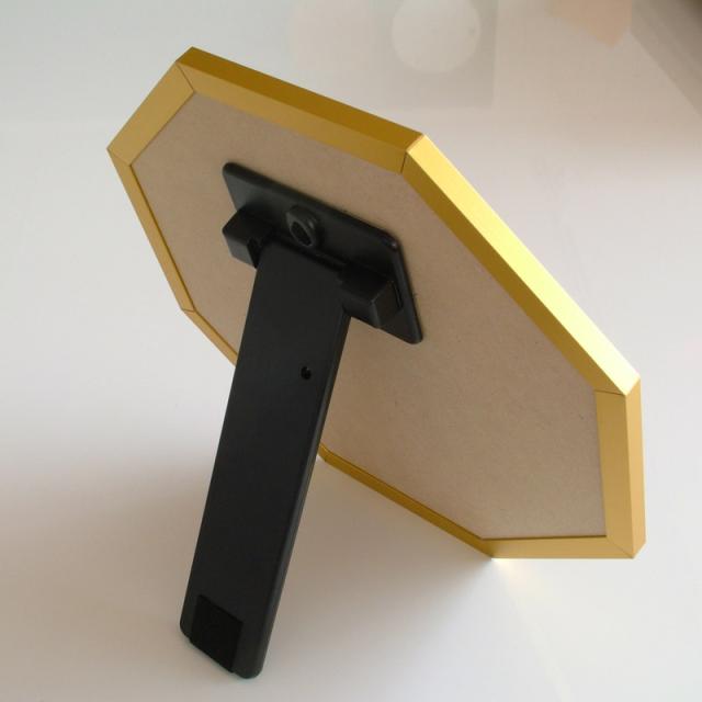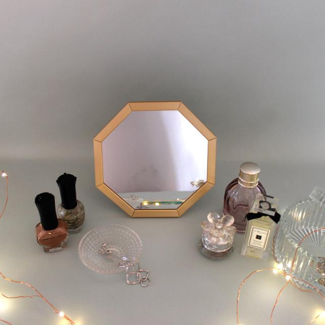 スタンド式と壁掛け式、2WAYタイプの八角形のミラー。
