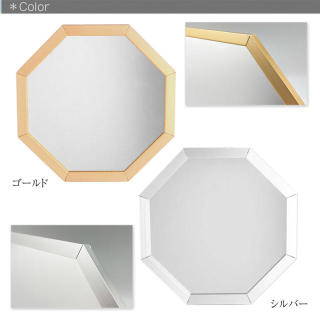 Octam/オクタム 八角形 スタンド&ウォールミラーSS 壁掛けミラー 幸運を呼ぶメタリックの八角形ミラー 置き掛け兼用ミラー 八角鏡 スタンドミラー 風水鏡 フレームはゴールド、シルバー