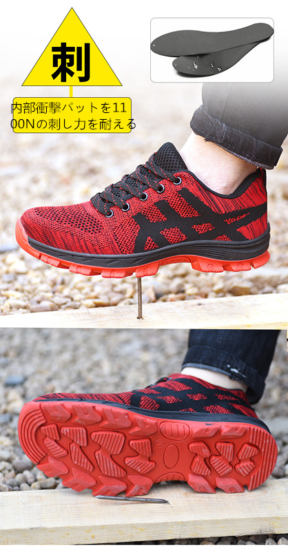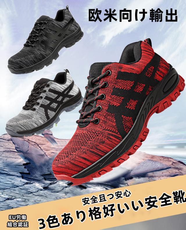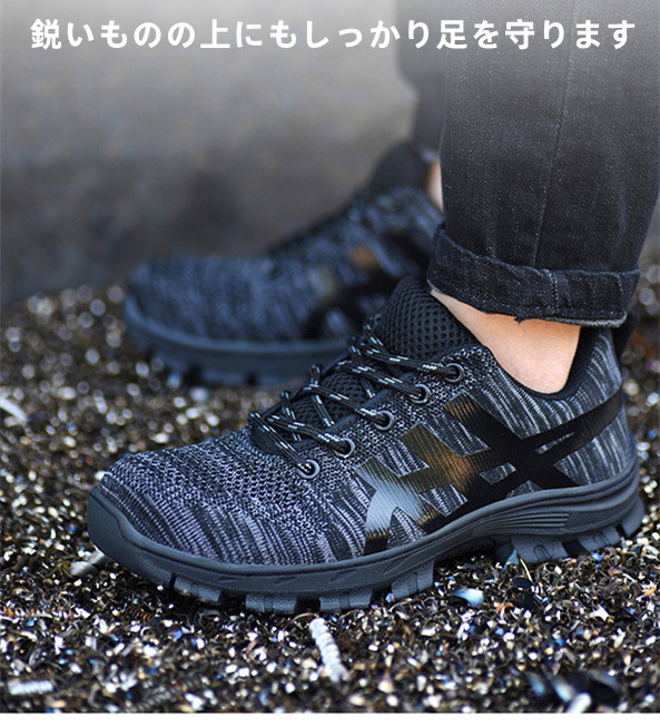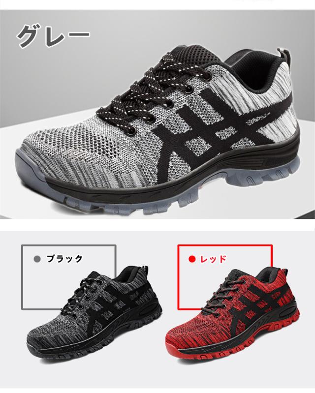 人気Arasja安全靴 フライウィーブ作りで通気性よく 耐圧性と耐摩耗性安全靴 カジュアルスニーカー 仕事や普通時両方使えます