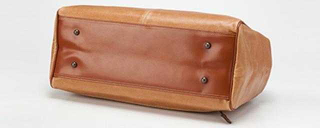 素材は白化合皮を使用。アンティーク調の本革のように見えますが合皮なので手入れも楽らく。レトロな雰囲気が紳士にピッタリです。底鋲付きなのでバッグを地面に直接置くことがあっても、底面が汚れるのを多少防いでくれます。
