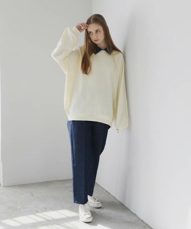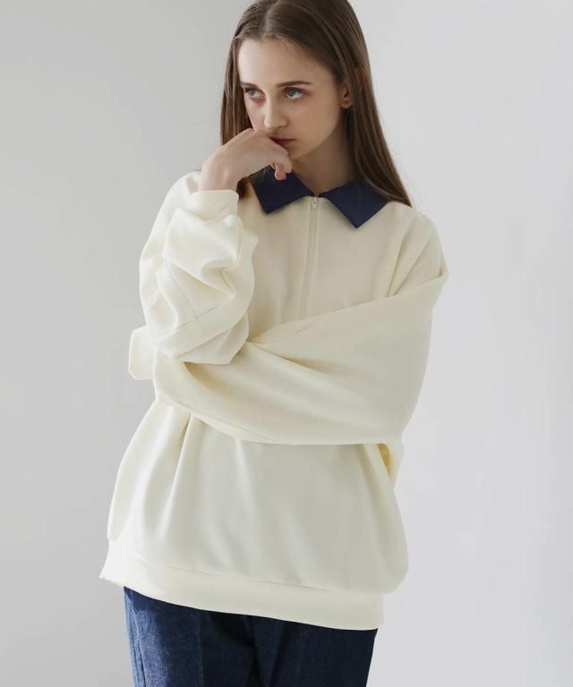 オーバーサイズハーフジップポンチプルオーバー