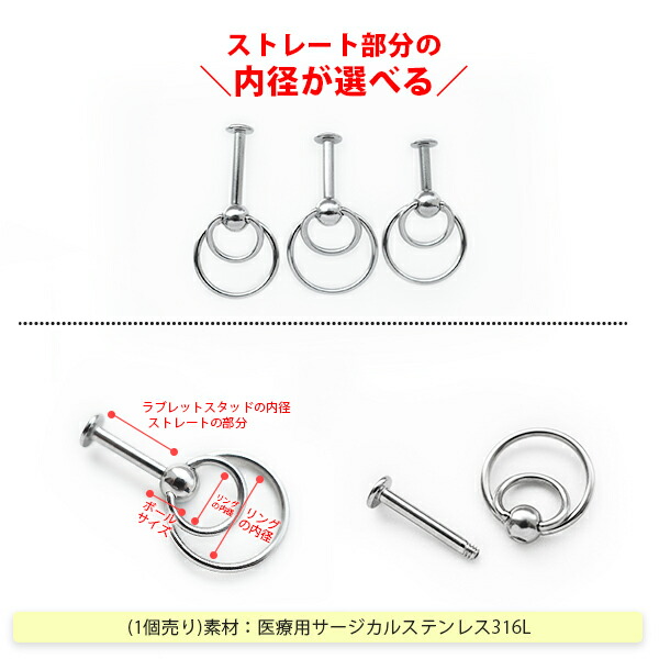 内径が選べますので耳たぶや軟骨、口ピアスに幅広くお使い頂けます。