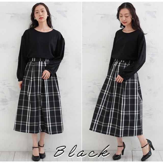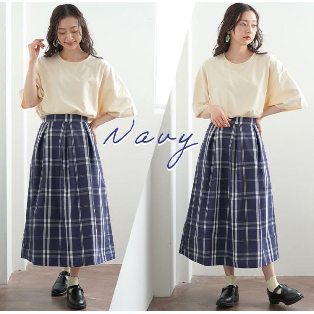 タックデザインチェックスカート体型別コメント