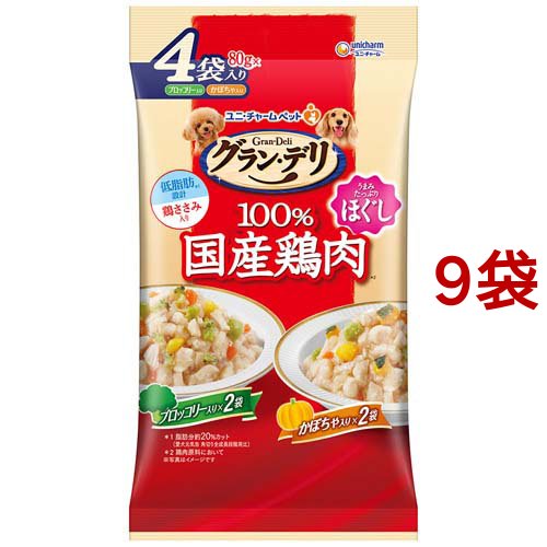 グラン・デリ 100%国産鶏肉 パウチ ほぐし 成犬用 ブロッコリー&かぼちゃ(4コパック*9袋(1袋80g))[犬のおやつ・サプリメント]